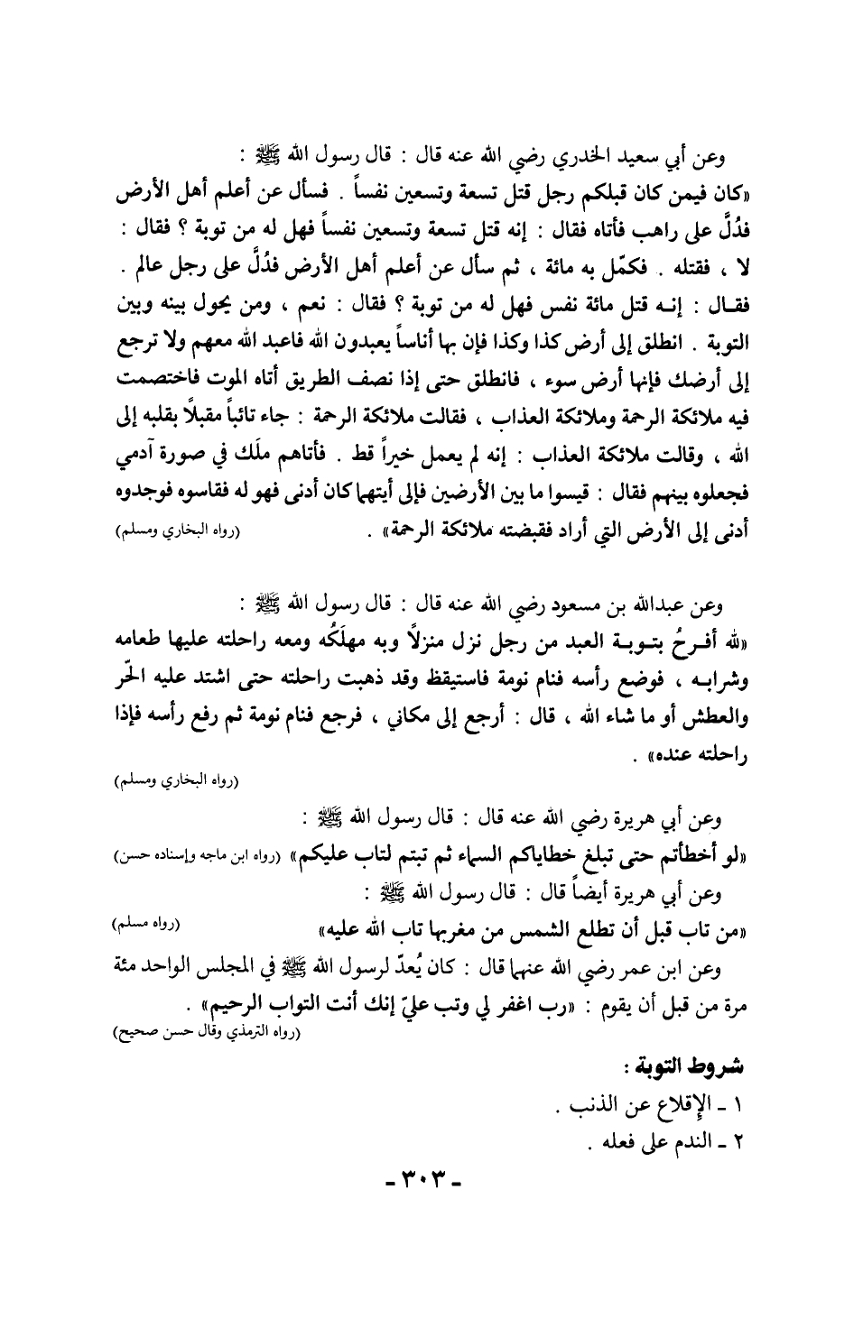 فإن فقد أحد هذه الثلاثة لم تصح توبته ويزاد شرط رابع: إذا كان الذنب يتعلق بحق آدمي، فعليه إذًا أن يبرأ من حق صاحبها، فإن كان مالاً أو نحوه ردَّه إليه، وإن كان حدَّ قذف مكّنه منه أو طلب عفوه، وإن كان غيبة استحلّه منها.