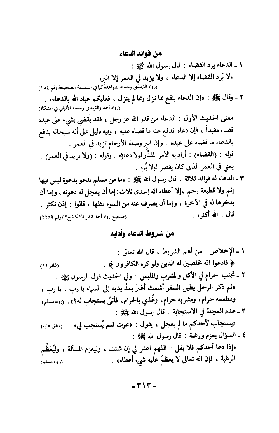 8 - تكرار الدعاء ثلاثًا: "كان رسول الله - صلى الله عليه وسلم - إذا دعا دعا ثلاثًا، وإذا سأل سأل ثلاثًا" (متفق عليه)