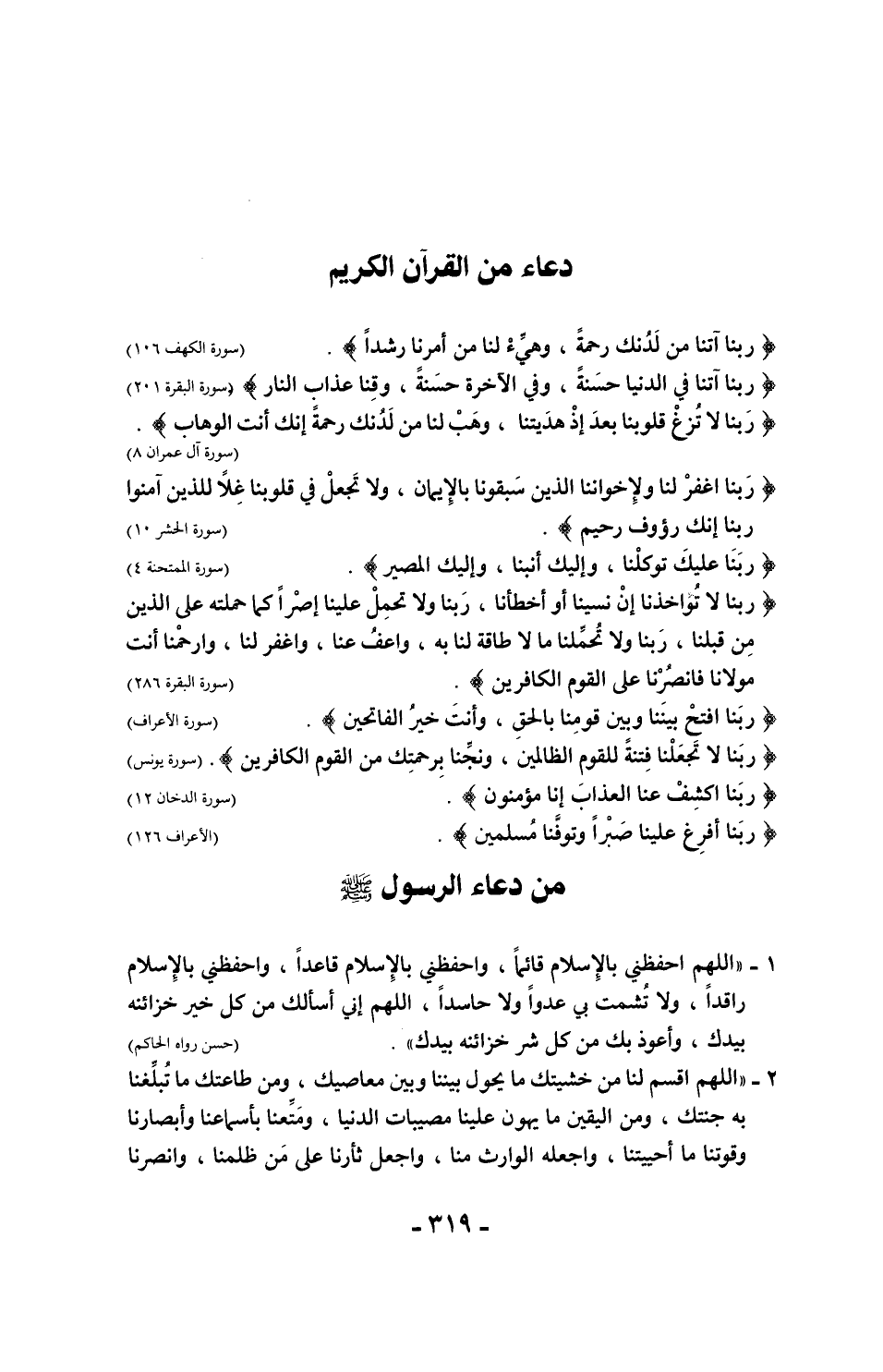 10 - "اللهم إني أعوذ بك من العجز والكسل، والجبن والبخل، والهرَم، والقسوة، والغفلة، والعيلة والذلة والمسكنة، وأعوذ بك من الفقر، والكفر، والفسوق والشقاق والنفاق، والسمعة والرياء، وأعوذ بك من الصُّم، والبُكم، والجنون، والجذام، والبرَص، وسَيِّء الأسقام". (روه مسلم)