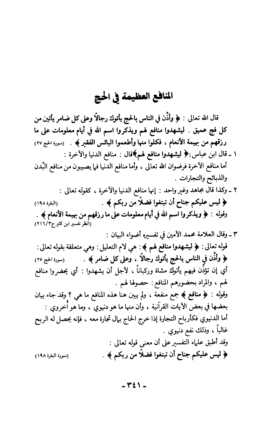 أنه ليس على الجاج إثم ولا حرج إذا ابتغى ربحًا بتجارة في أيام الحج، إِن كان ذلك لا يشغله عن شيء من أداء مناسكه.