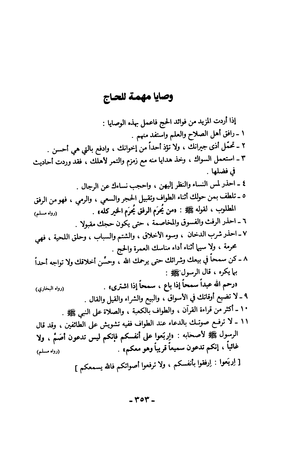 2 - احرص على صلاة الجماعة، ولا سيما في المسجد الحرام، ومسجد الرسول - صلى الله عليه وسلم -، فالصلاة في المسجد الحرام بمائة ألف صلاة، وفي المسجد النبوي بألف صلاة.