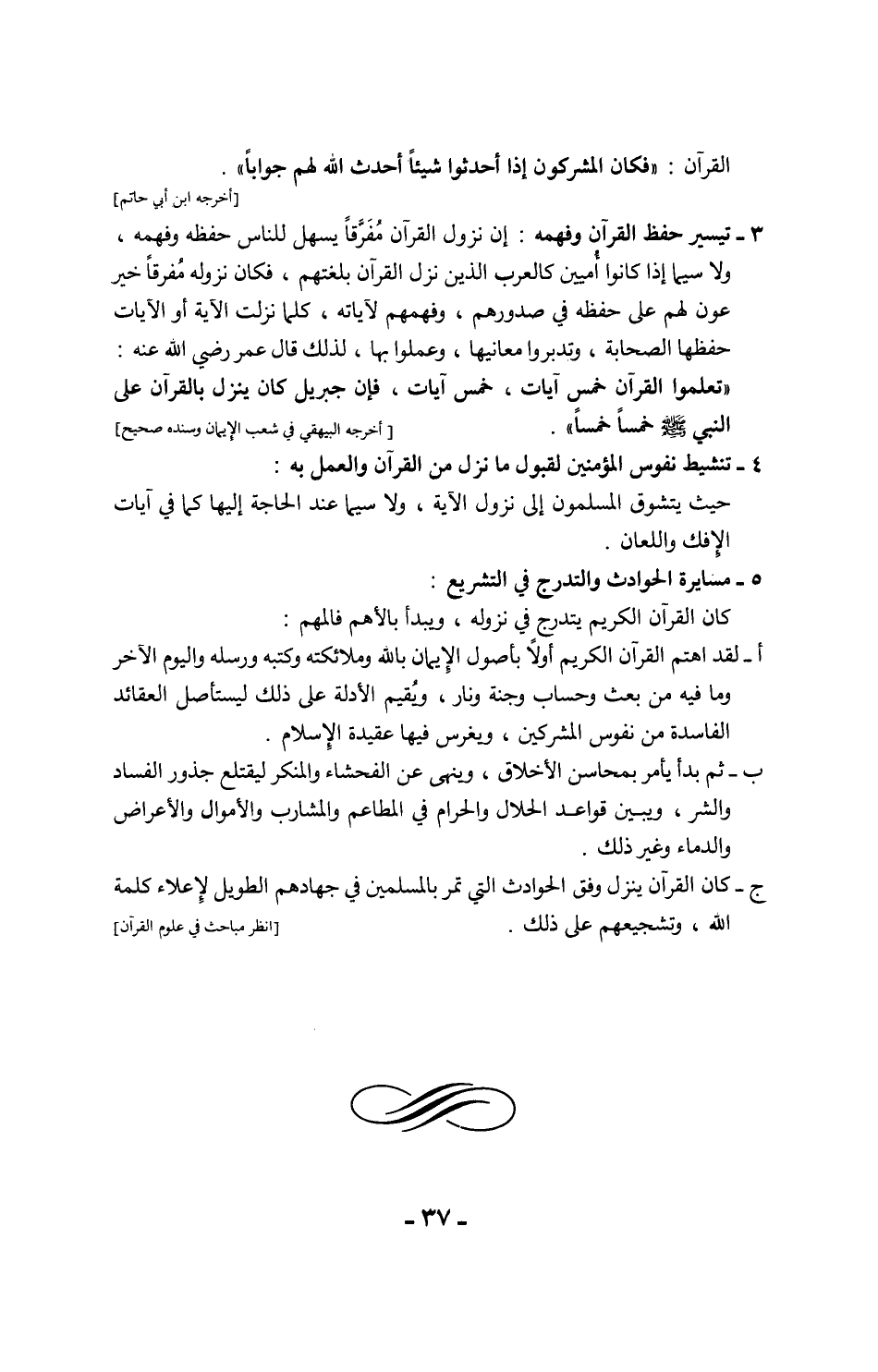 الناس إلى الإِسلام نزل الحلال والحرام، ولو نزل أول شيء "لا تشربوا الخمر" لقالوا: لا ندع الخمر أبدًا، ولو نزل "لا تزنوا" لقالوا: لا ندَع الزنا أبدًا". [أخرجه البخاري]