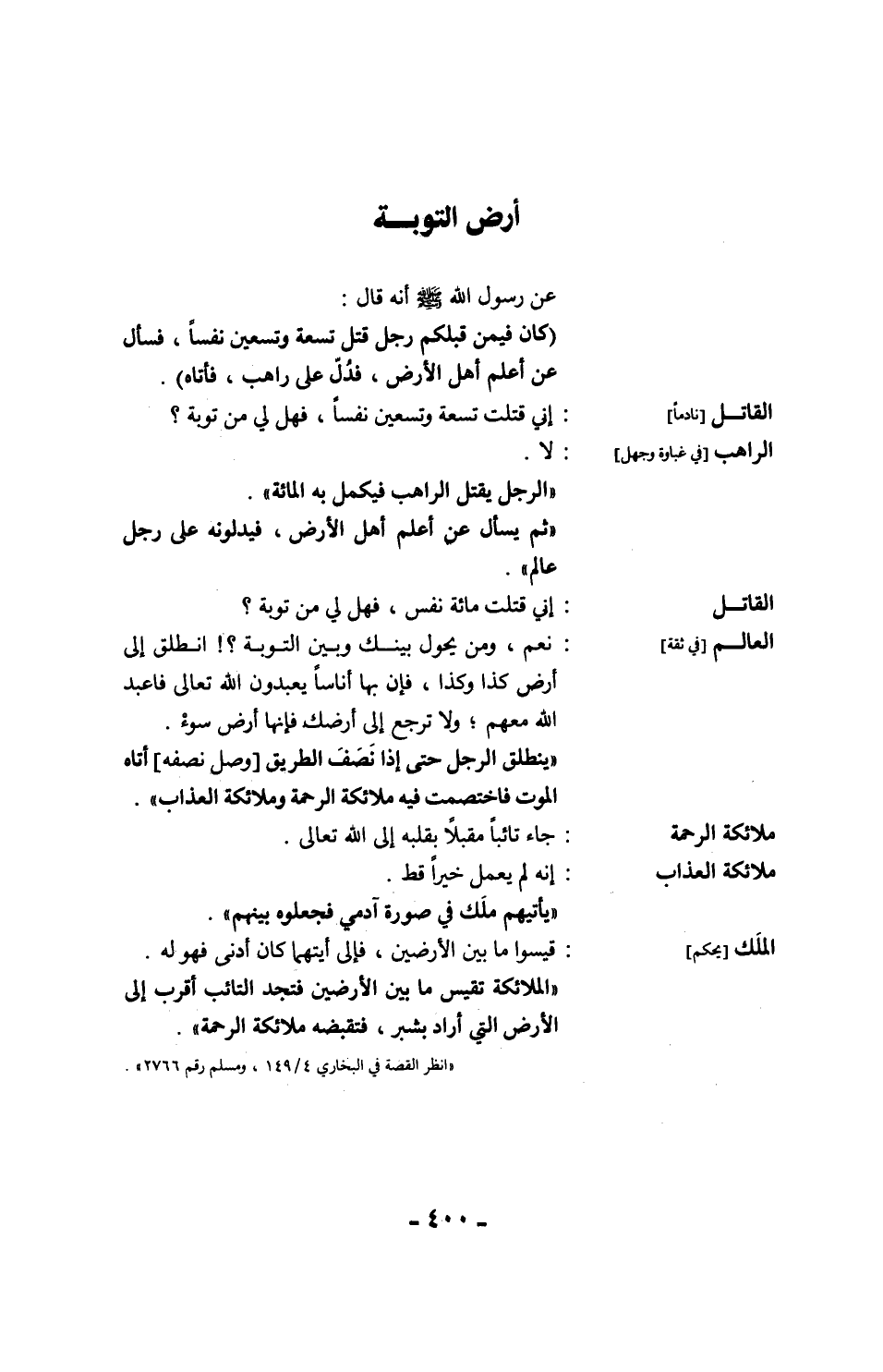 4 - العالم: هو الذي يفتح للناس باب التوبة، ويُغلق باب القنوط من الرحمة، فهو كالطبيب يأخذ بيد المريض نحو الشفاء، ويفتح له باب الرجاء.