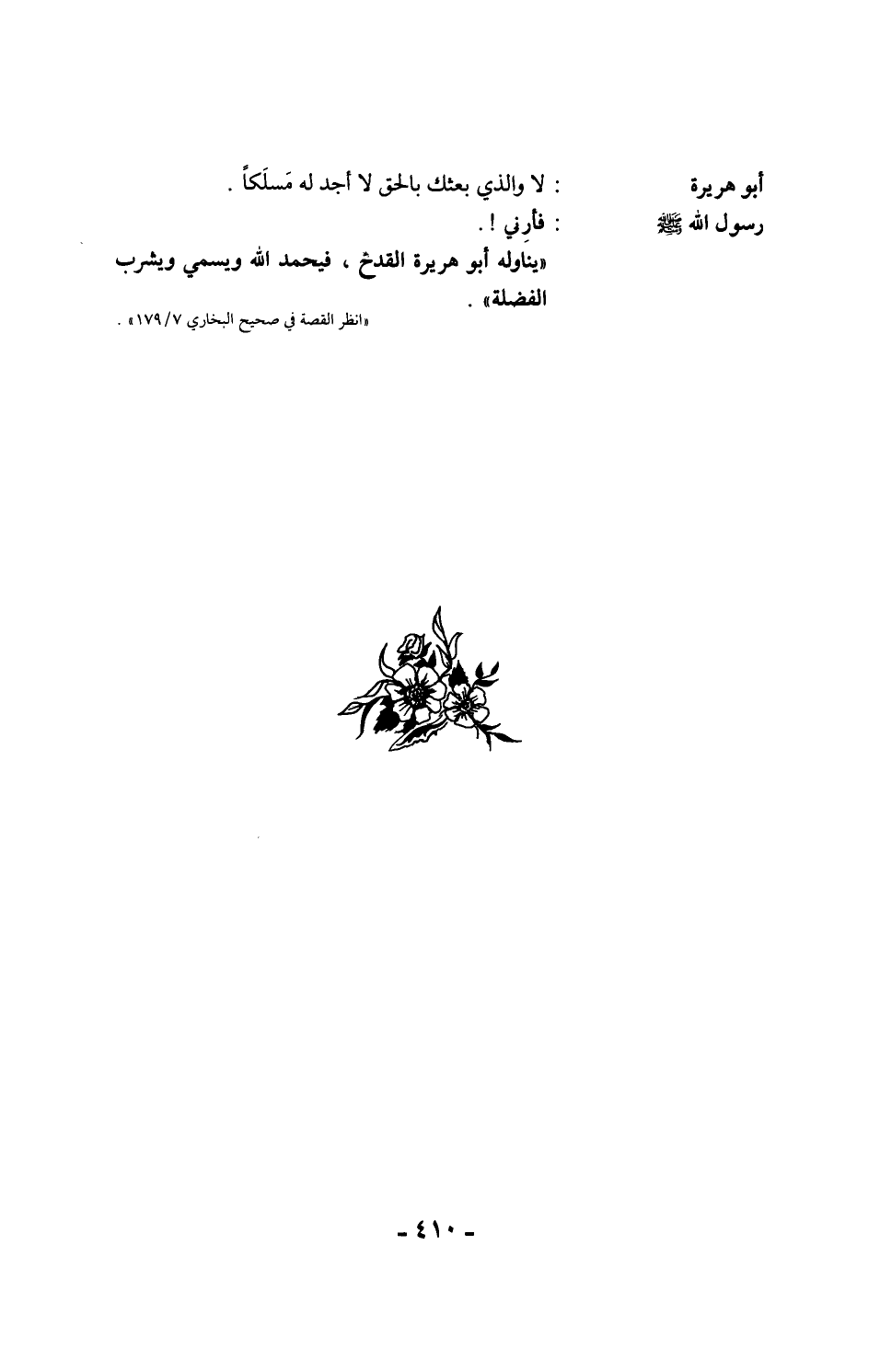 5 - ملاطفة الرسول - صلى الله عليه وسلم - لأبي هريرة الذي ساءه كثرة الشاربين مع قلة اللبن تتجلَّى في مناداته مرارًا: (أبا هر - أبا هِر).