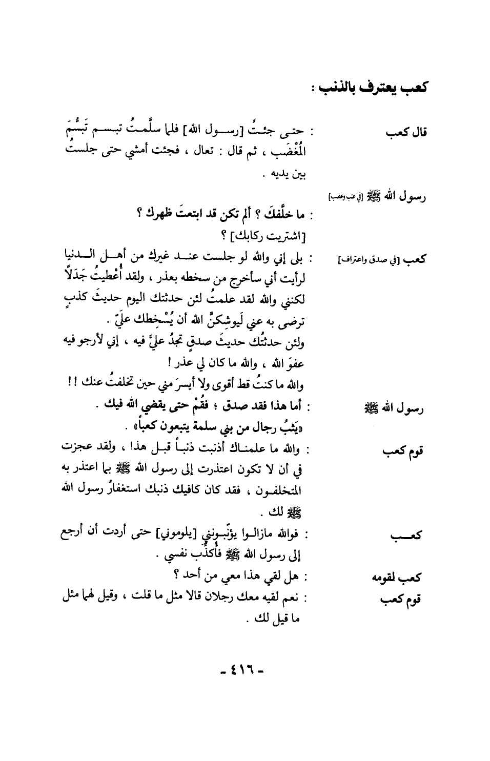 قال كعب: فذكروا لي رجلين صالحين قد شهدا بدرًا فيهما أُسوة، فمضيتُ حين ذكروهما لي.