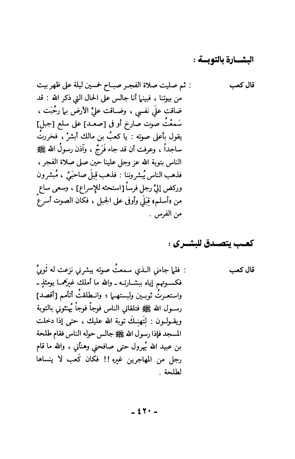 كعب: يا رسول الله إن من توبتي أن أنخلع من مالي صدقة إلى الله وإلى رسوله.