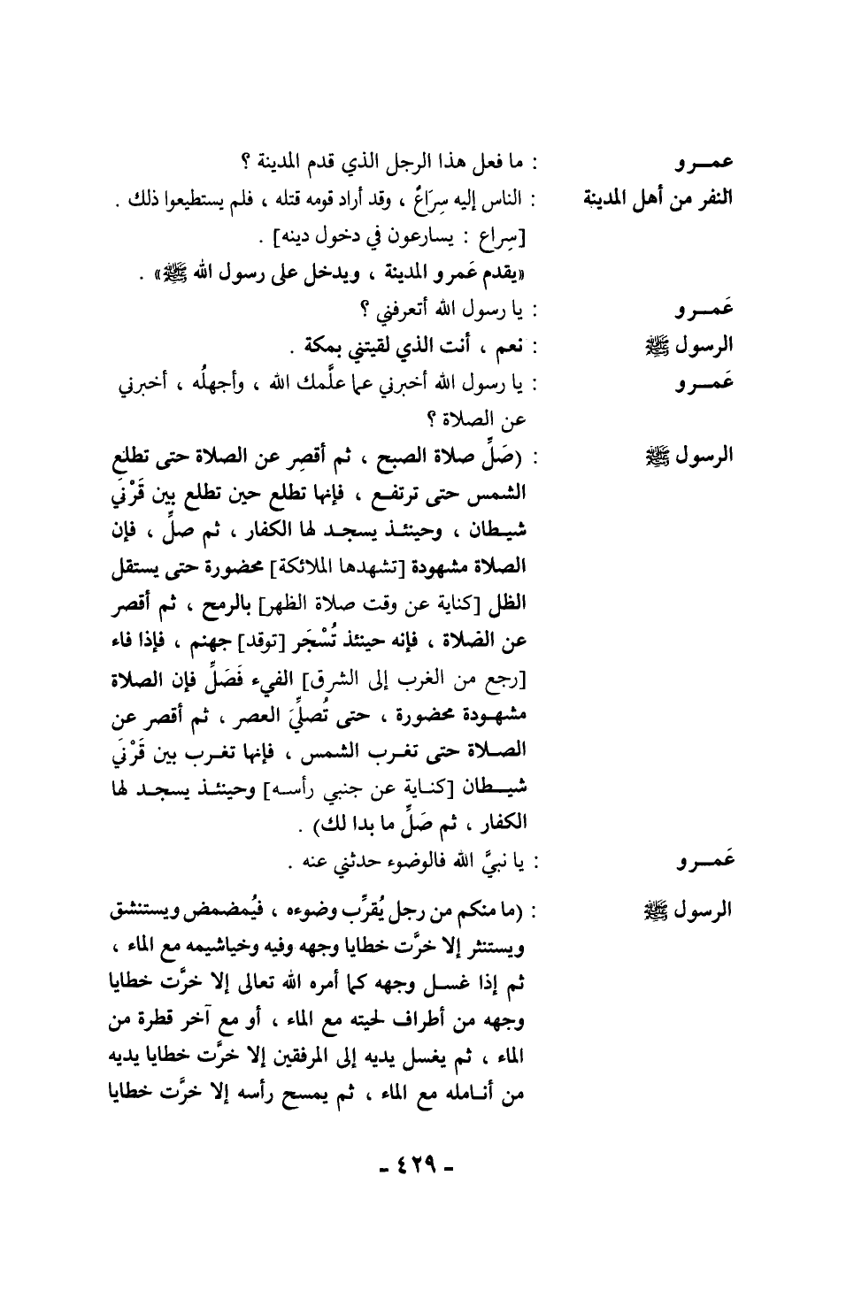 رأسه من أطراف شعره ومن أُذنيه مع الماء، ثم يغسل رجليه إلى الكعبين إلا خرَّت خطايا رجليه مع الماء، فإن هو قام فصلَّى، فحمد الله وأثنى عليه ومجَّده بالذي هُوَ له أهل، وفرَّغ قلبه لله في صلاته، إلا انصرت من خطيئته كهيئته يوم وَلدَته أُمه".