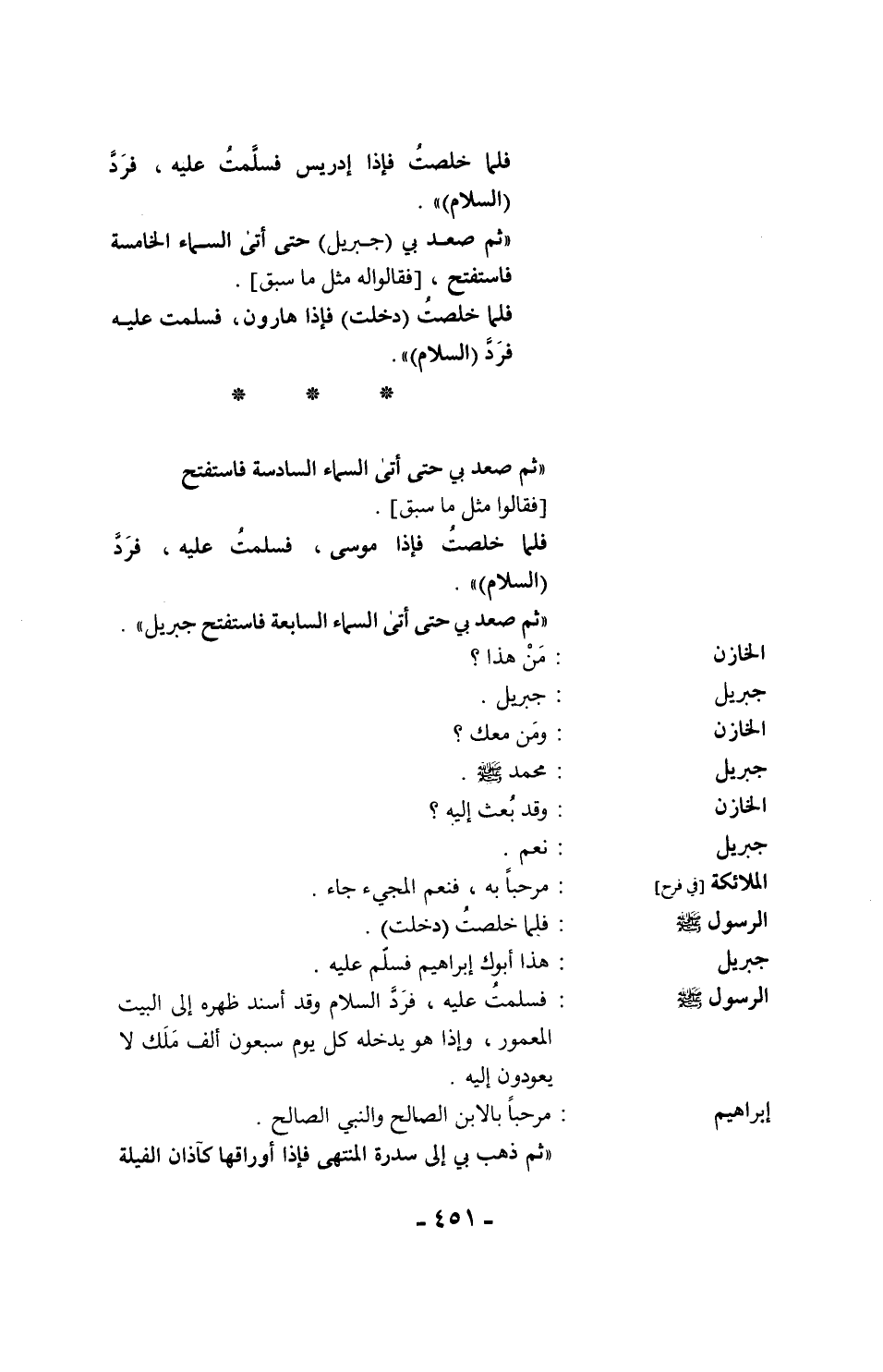 "فلم أزل أرجع بين رب تبارك وتعالى وبين موسى -عليه السلام-، حتى قال: