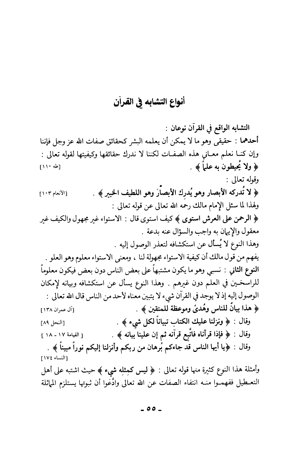 والراسخون في العلم أصحاب العقول يعرفون كيف يخرجون هذه الآيات المتشابهة إلى معنى يتلاءم مع الآيات الأخرى فيبقى القرآن محكماً كله لا متشابه فيه. [انظر كتاب أصول علم التفسير للشيخ محمد صالح العثيمين]