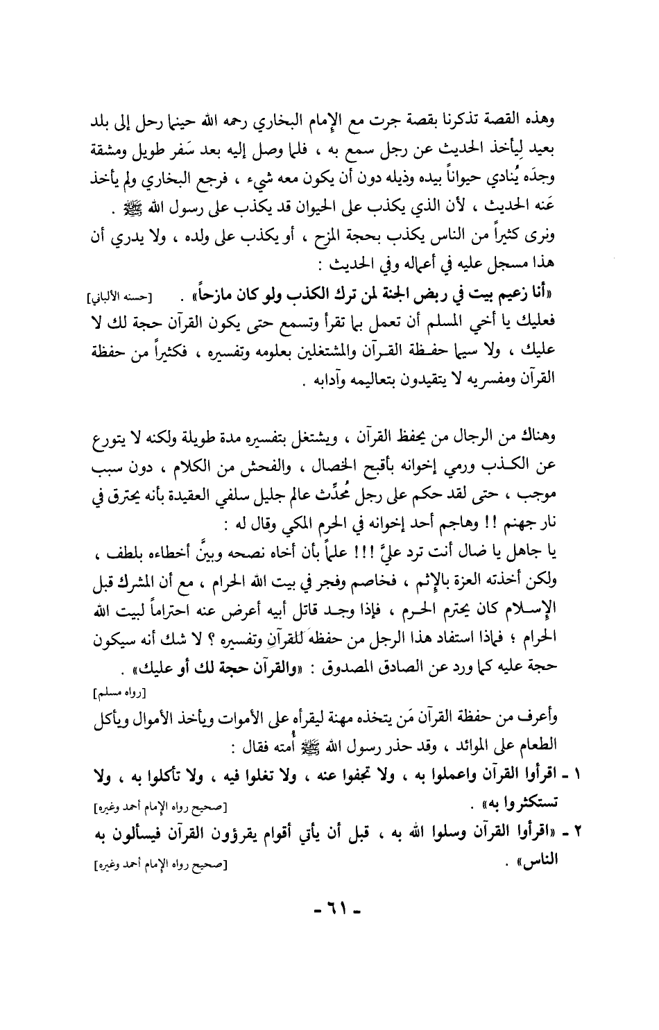فنسأل الله الكريم المنان القادر على ما يشاء، أن يُخلصنا مما يُسخطه ويستعملنا فيما يرضيه من حفظ كتابه وفهمه والقيام بمقتضاه آناء الليل وأطراف النهار على الوجه الذي يحبه ويرضاه إنه كريم وهاب. [انظر تفسير ابن كثير]