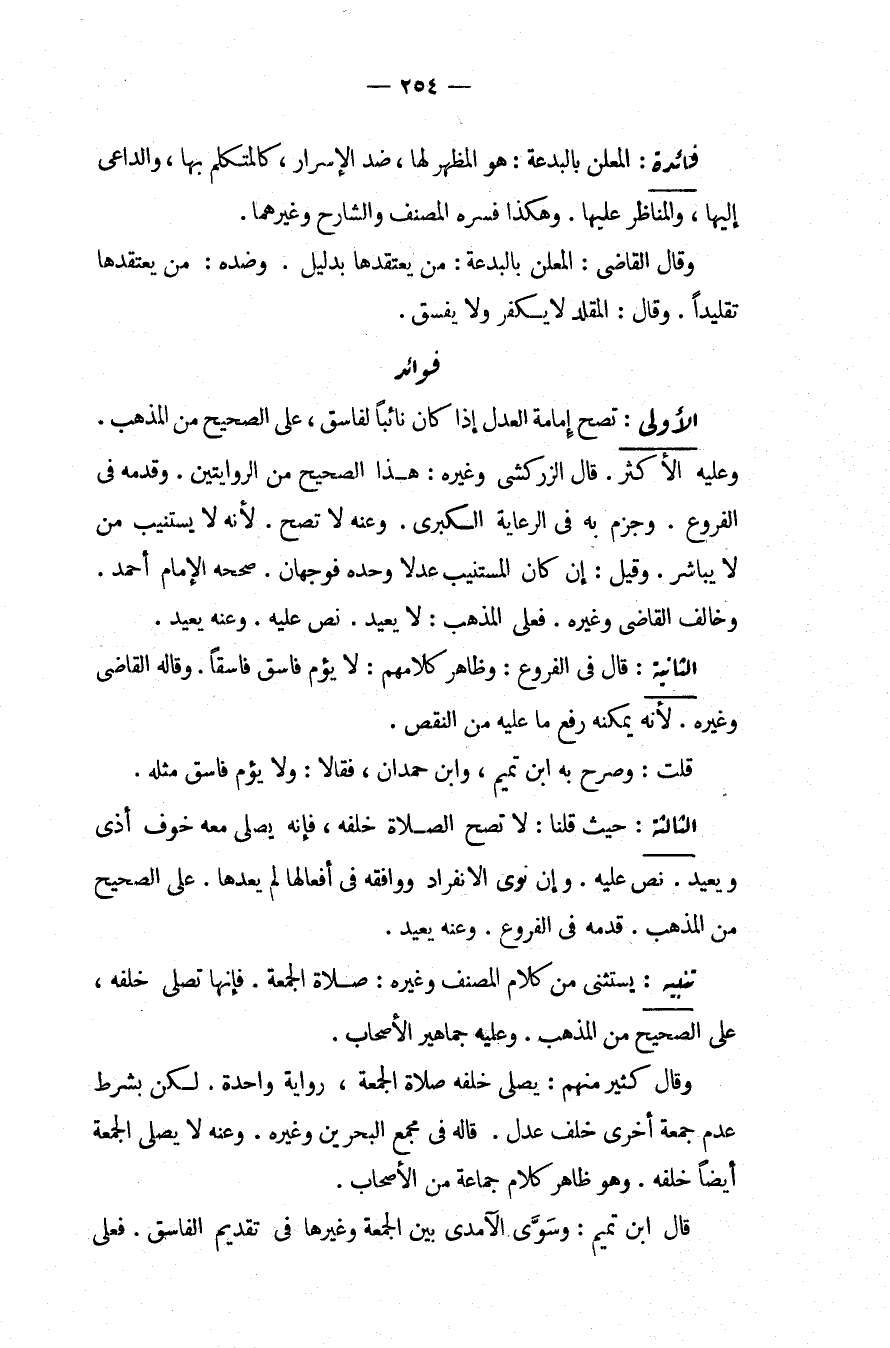 قَالَ ابْنُ تَمِيمٍ: وَسَوَّى الْآمِدِيُّ بَيْنَ الْجُمُعَةِ وَغَيْرِهَا فِي تَقْدِيمِ الْفَاسِقِ فَعَلَى