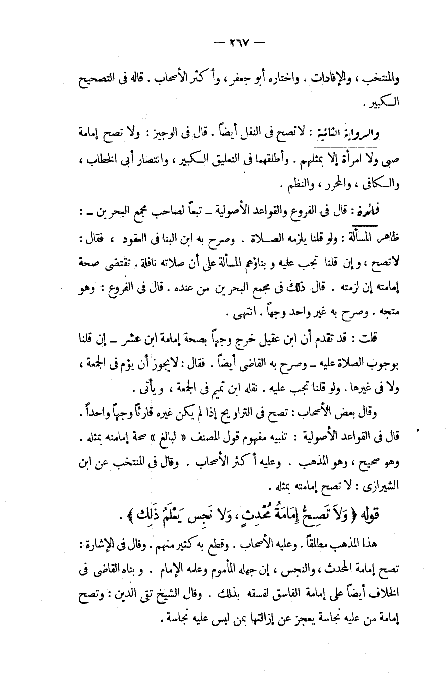 وَالْمُنْتَخَبِ، وَالْإِفَادَاتِ وَاخْتَارَهُ أَبُو جَعْفَرٍ، وَأَكْثَرُ الْأَصْحَابِ، قَالَهُ فِي التَّصْحِيحِ الْكَبِيرِ وَالرِّوَايَةُ الثَّانِيَةُ: لَا تَصِحُّ فِي النَّفْلِ أَيْضًا قَالَ فِي الْوَجِيزِ: وَلَا تَصِحُّ إمَامَةُ صَبِيٍّ وَلَا امْرَأَةٍ إلَّا بِمِثْلِهِمْ، وَأَطْلَقَهُمَا فِي التَّعْلِيقِ الْكَبِيرِ، وَانْتِصَارِ أَبِي الْخَطَّابِ، وَالْكَافِي، وَالْمُحَرَّرِ، وَالنَّظْمِ.