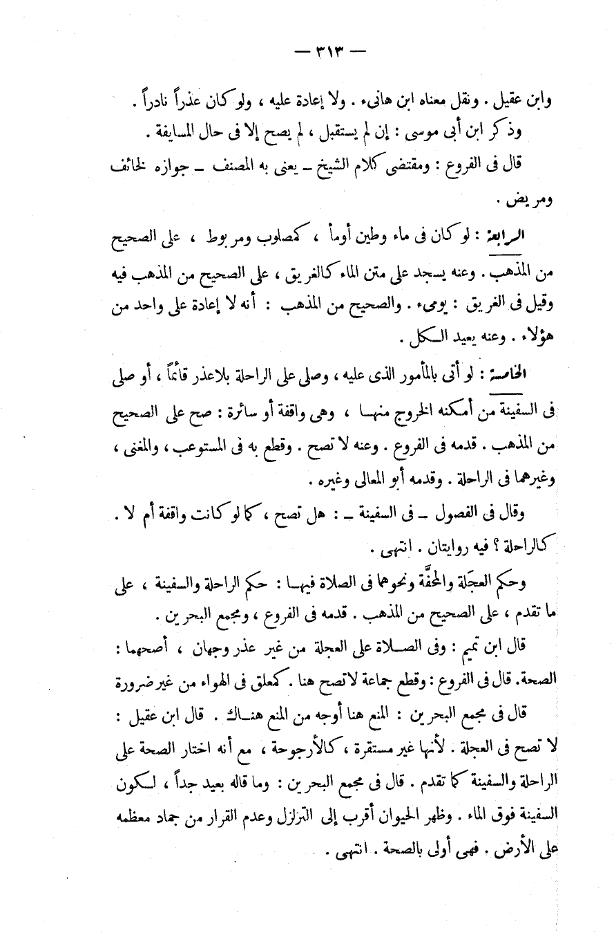 الْخَامِسَةُ: لَوْ أَتَى بِالْمَأْمُورِ الَّذِي عَلَيْهِ، وَصَلَّى عَلَى الرَّاحِلَةِ بِلَا عُذْرٍ قَائِمًا، أَوْ صَلَّى فِي السَّفِينَةِ مَنْ أَمْكَنَهُ الْخُرُوجُ مِنْهَا، وَهِيَ وَاقِفَةٌ أَوْ سَائِرَةٌ: صَحَّ عَلَى الصَّحِيحِ مِنْ الْمَذْهَبِ قَدَّمَهُ فِي الْفُرُوعِ، وَعَنْهُ لَا تَصِحُّ وَقَطَعَ بِهِ فِي الْمُسْتَوْعِبِ، وَالْمُغْنِي، وَغَيْرِهِمَا فِي الرَّاحِلَةِ وَقَدَّمَهُ أَبُو الْمَعَالِي وَغَيْرُهُ، وَقَالَ فِي الْفُصُولِ فِي السَّفِينَةِ: هَلْ تَصِحُّ، كَمَا لَوْ كَانَتْ وَاقِفَةً أَمْ لَا كَالرَّاحِلَةِ؟ فِيهِ رِوَايَتَانِ انْتَهَى.