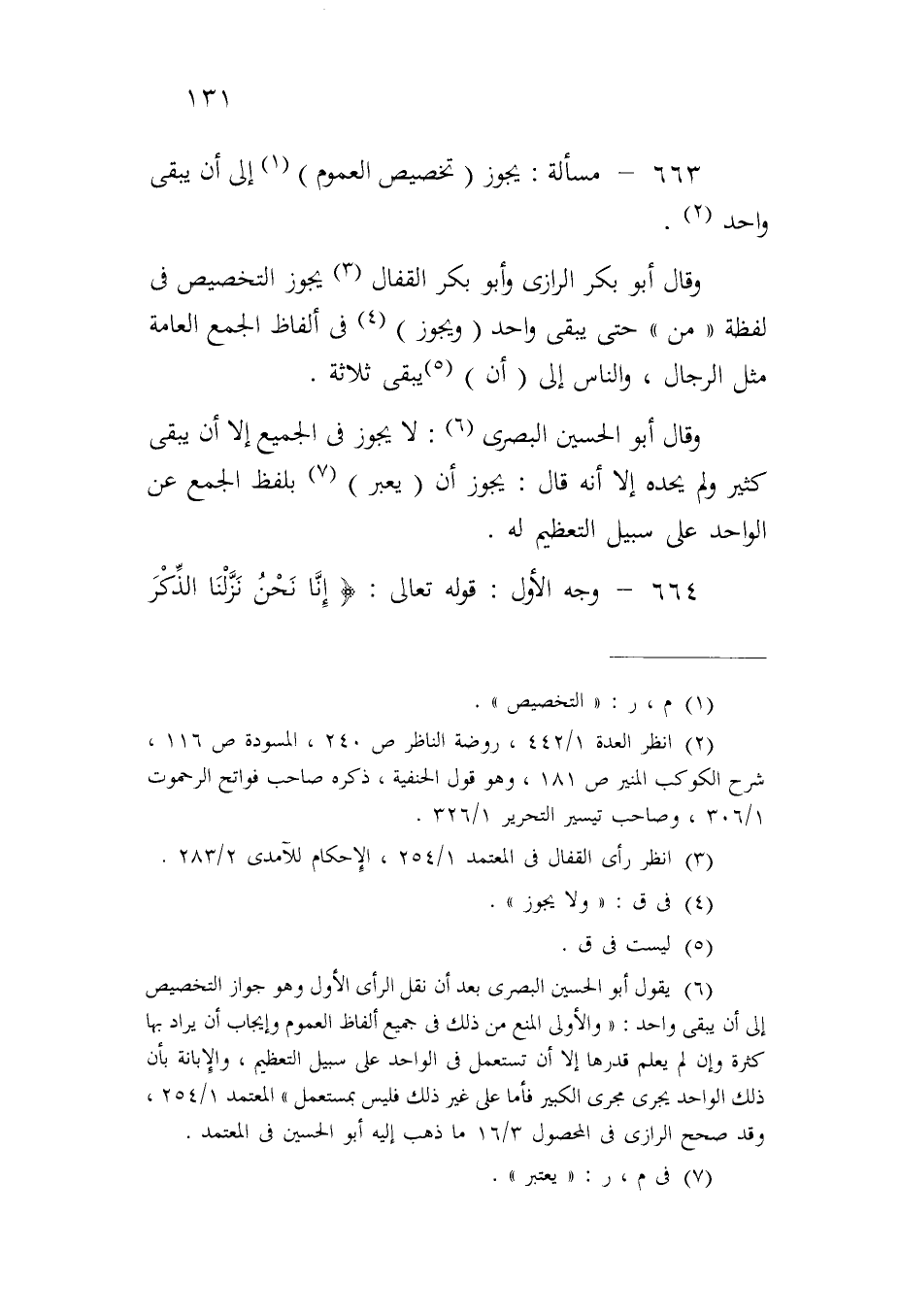 ٦٦٣ - مسألة: يجوز (تخصيص العموم) إلى أن يبقى واحد.
