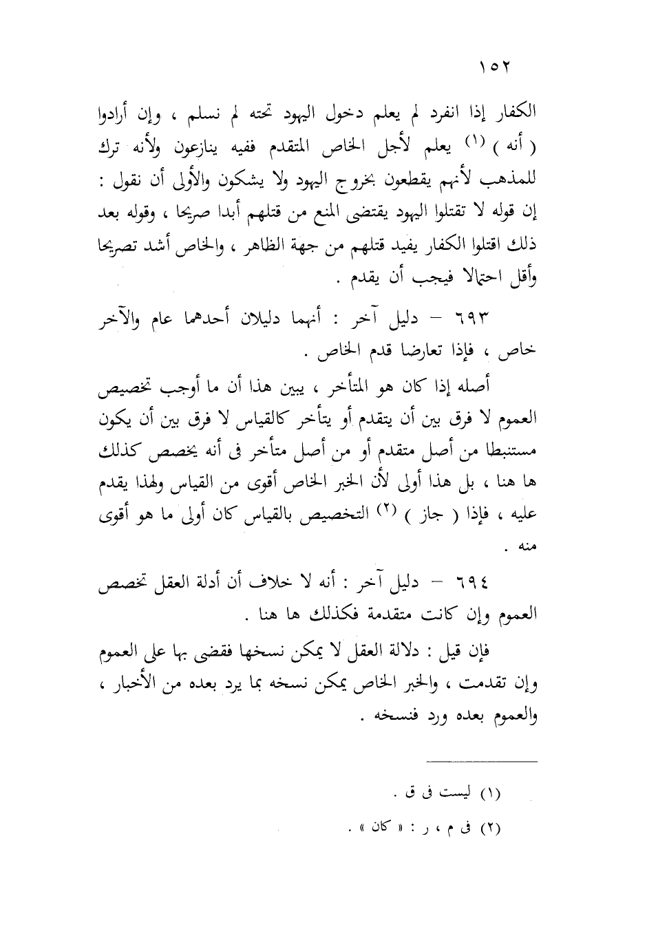 ٦٩٣ - دليل آخر: أنهما دليلان أحدهما عام والآخر خاص، فإذا تعارضا قدم الخاص.