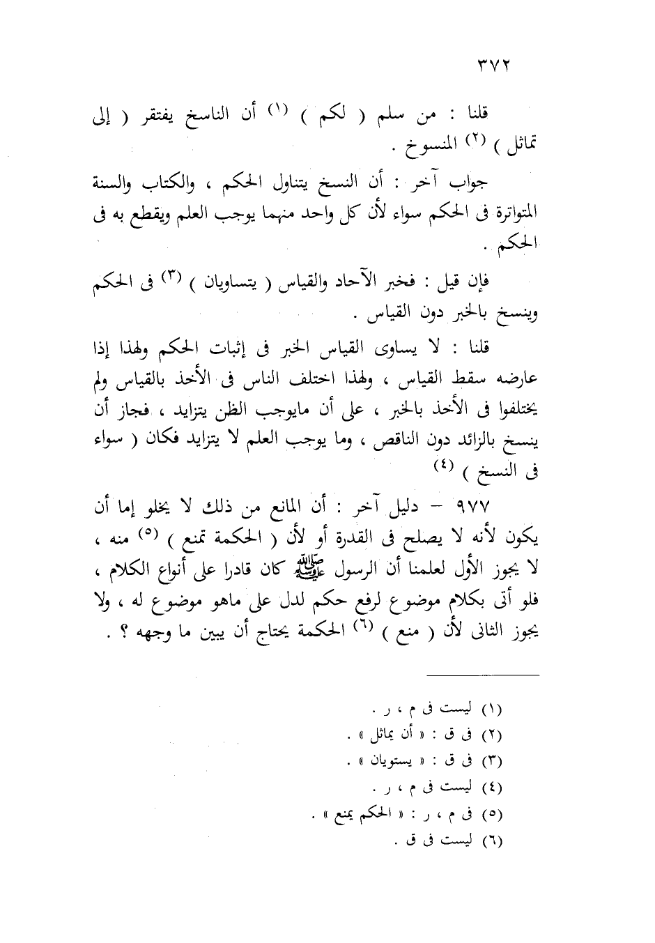 ٩٧٧ - دليل آخر: أن المانع من ذلك لا يخلو إما أن يكون لأنه لا يصلح في القدرة أو لأن (الحكمة تمنع) منه، لا يجوز الأول لعلمنا أن الرسول صلى الله عليه وسلم كان قادراً على أنواع الكلام، فلو أتى بكلام موضوع لرفع حكم لدل على ما هو موضوع له، ولا يجوز الثاني لأن (منع) الحكمة يحتاج أن يبين أن يبين ما وجهه؟