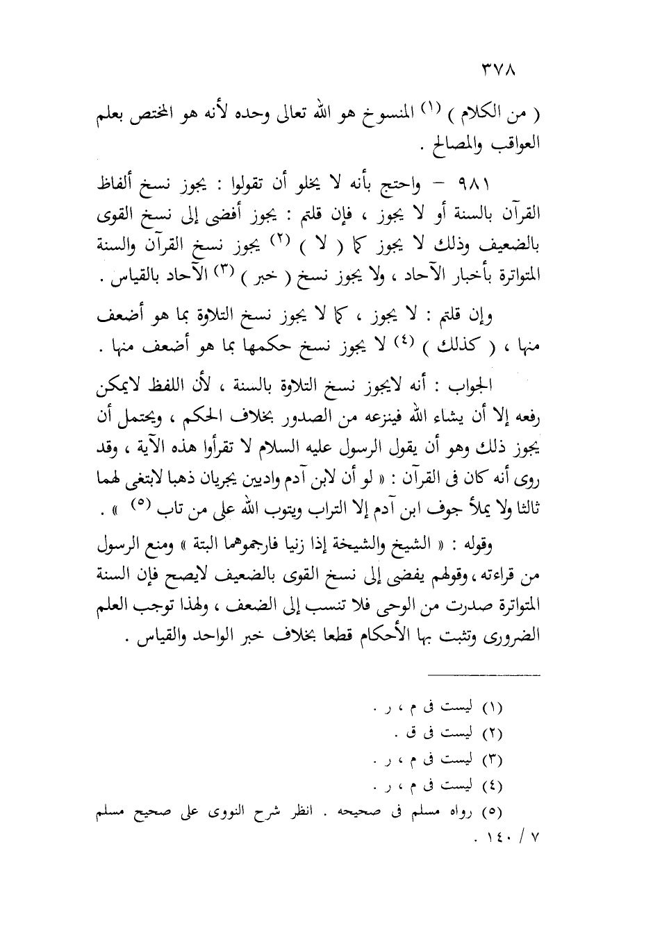 (من الكلام) المنسوخ هو الله تعالى وحده لأنه هو المختص بعلم العواقب والمصالح.