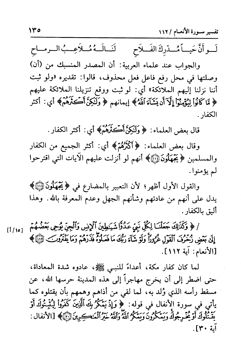 [15/أ] / {وَكَذَلِكَ جَعَلْنَا لِكُلِّ نِبِيٍّ عَدُوًّا شَيَاطِينَ الإِنْسِ وَالْجِنِّ يُوحِي بَعْضُهُمْ إِلَى بَعْضٍ زُخْرُفَ الْقَوْلِ غُرُورًا وَلَوْ شَاءَ رَبُّكَ مَا فَعَلُوهُ فَذَرْهُمْ وَمَا يَفْتَرُونَ (112)} [الأنعام: آية 112].