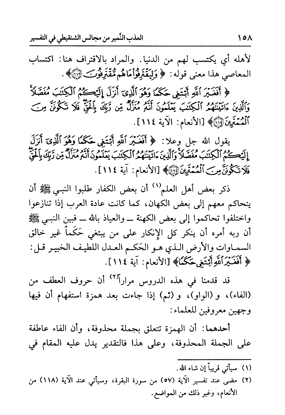 {أَفَغَيْرَ اللَّهِ أَبْتَغِي حَكَمًا وَهُوَ الَّذِي أَنْزَلَ إِلَيْكُمُ الْكِتَابَ مُفَصَّلاً وَالَّذِينَ آتَيْنَاهُمُ الْكِتَابَ يَعْلَمُونَ أَنَّهُ مُنَزَّلٌ مِّن رَّبِّكَ بِالْحَقِّ فَلاَ تَكُونَنَّ مِنَ الْمُمْتَرِينَ (114)} [الأنعام: الآية 114].