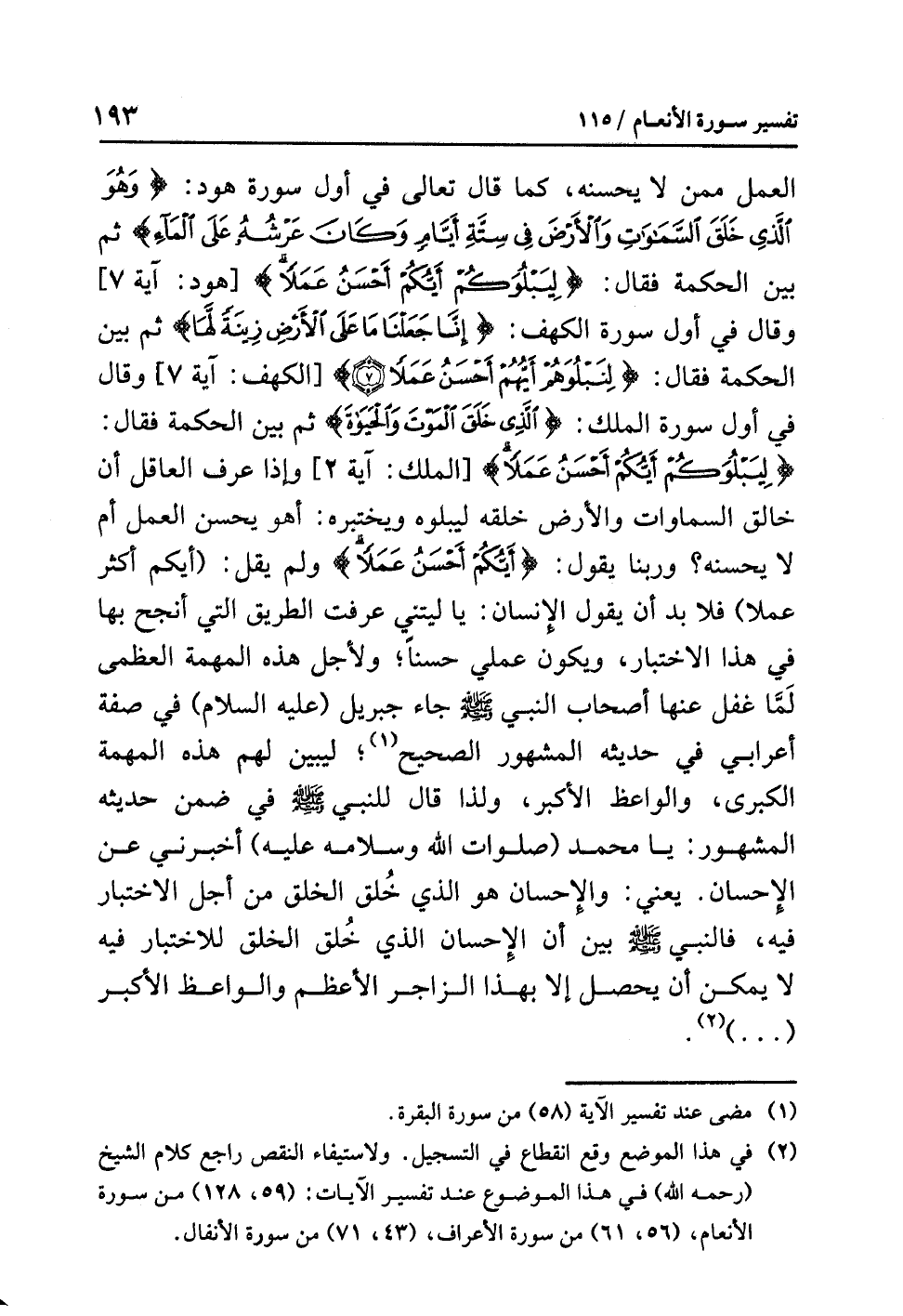 (¬2) في هذا الموضع وقع انقطاع في التسجيل. ولاستيفاء النقص راجع كلام الشيخ (رحمه الله) في هذا الموضوع عند تفسير الآيات: (59، 128) من سورة الأنعام، (56، 61) من سورة الأعراف، (43، 71) من سورة الأنفال.