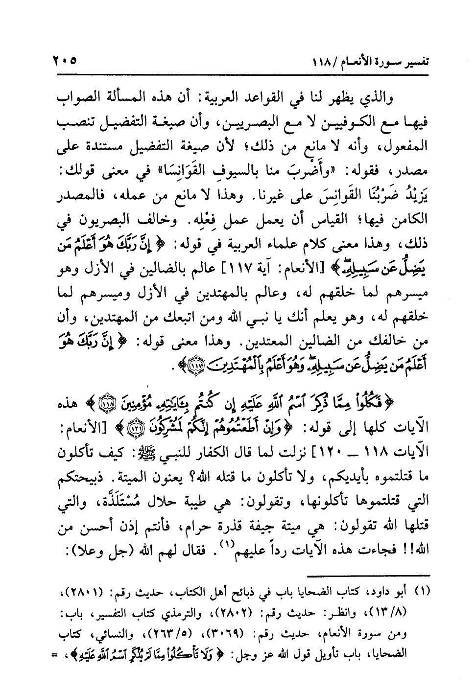 (¬1) أبو داود كتاب الضحايا باب في ذبائح أهل الكتاب. حديث رقم (2801)، (8/ 13)، وانظر: حديث رقم (2802)، والترمذي كتاب التفسير، باب: ومن سورة الأنعام. حديث رقم (3069)، (5/ 263)، والنسائي، كتاب الضحايا، باب تأويل قول الله عز وجل {وَلاَ تَأْكُلُوا مِمَّا لَمْ يُذْكَرِ اسْمُ اللَّهِ عَلَيْهِ} حديث رقم (4437)، (7/ 237)، من حديث ابن عباس (رضي الله عنهما). وانظر: صحيح الترمذي رقم (2454)، وصحيح أبي داود رقم (2444)، (2445)، وصحيح النسائي رقم (4134).