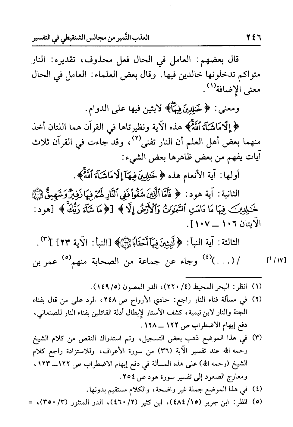 (¬5) انظر: ابن جرير (15/ 484)، ابن كثير (2/ 460)، الدر المنثور (3/ 350)، الرد على من قال بفناء الجنة والنار ص 53، 69، رفع الأستار 64 - 87، حادي الأرواح 249، 252.