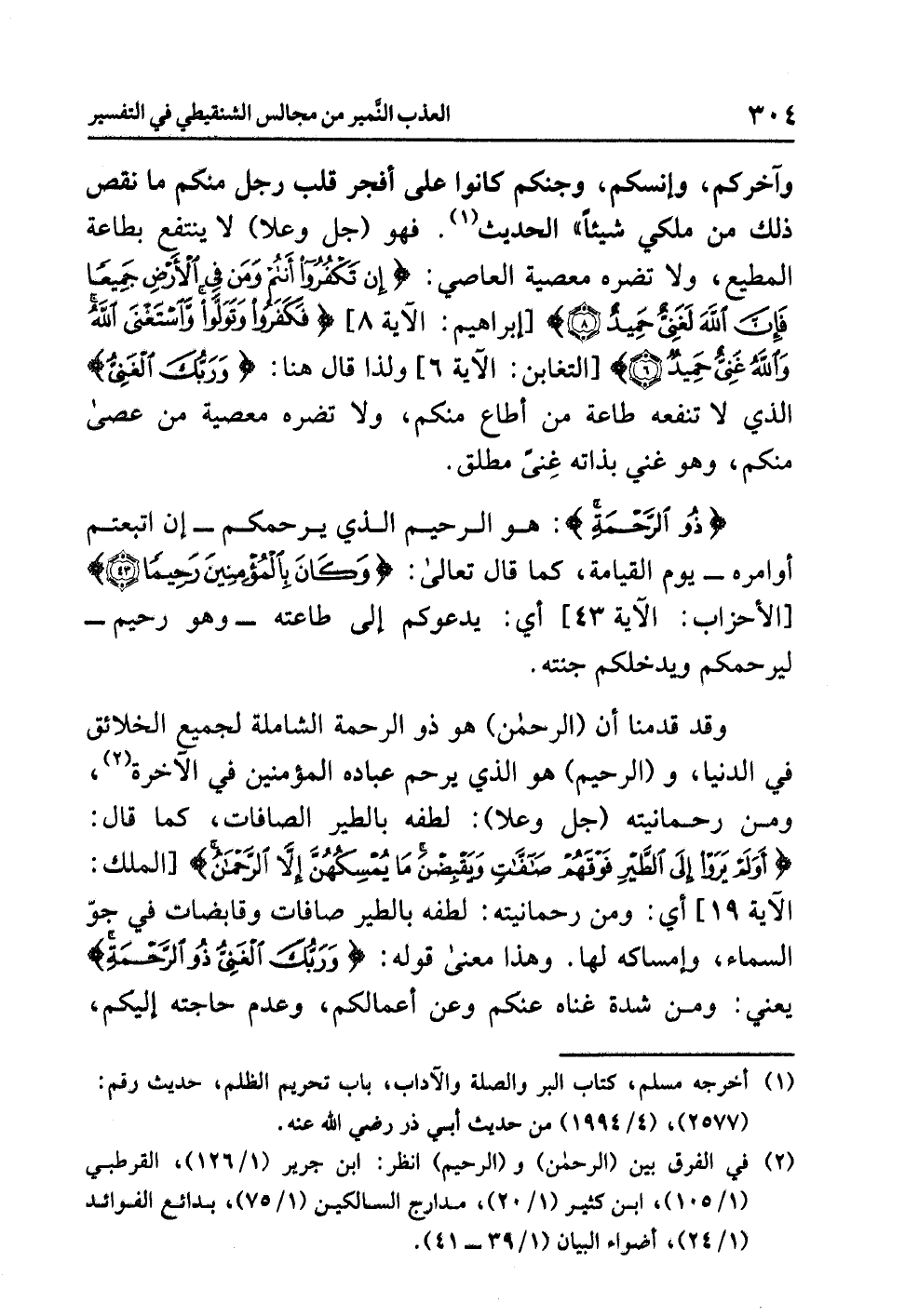 (¬2) في الفرق بين (الرحمن) و (الرحيم) انظر: ابن جرير (1/ 126)، القرطبي (1/ 105)، ابن كثير (1/ 20)، مدارج السالكين (1/ 75)، بدائع الفوائد (1/ 24)، أضواء البيان (1/ 39 - 41).