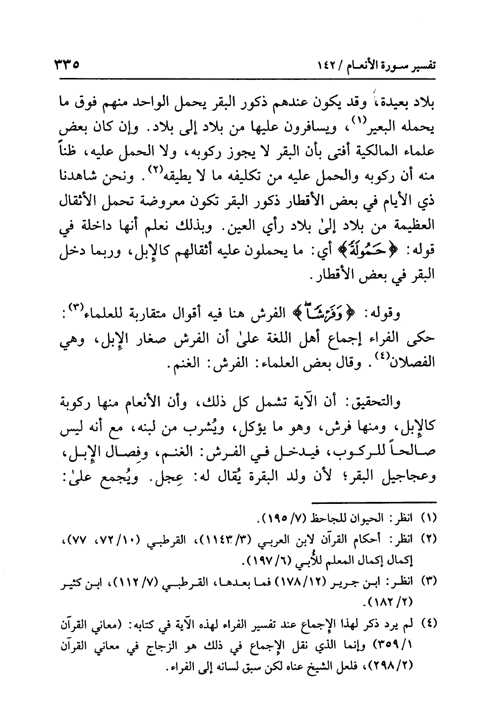 بلاد بعيدة، وقد يكون عندهم ذكور البقر يحمل الواحد منهم فوق ما يحمله البعير (¬1)، ويسافرون عليها من بلاد إلى بلاد، وإن كان بعض علماء المالكية أفتى بأن البقر لا يجوز ركوبه، ولا الحمل عليه، ظنًّا منه أن ركوبه والحَمْلَ عليه من تَكْلِيفِهِ ما لا يطيقه (¬2)، ونحن شاهدنا ذي الأيام في بعض الأقطار ذكور البقر تكون معروضة تحمل الأثقال العظيمة من بلاد إلى بلاد رَأْيَ العين، وبذلك نعلم أنها داخلة في قوله: {حَمُولَةً} أي: ما يحملون عليه أثقالهم كالإبل، وربما دخل البقر في بعض الأقطار.