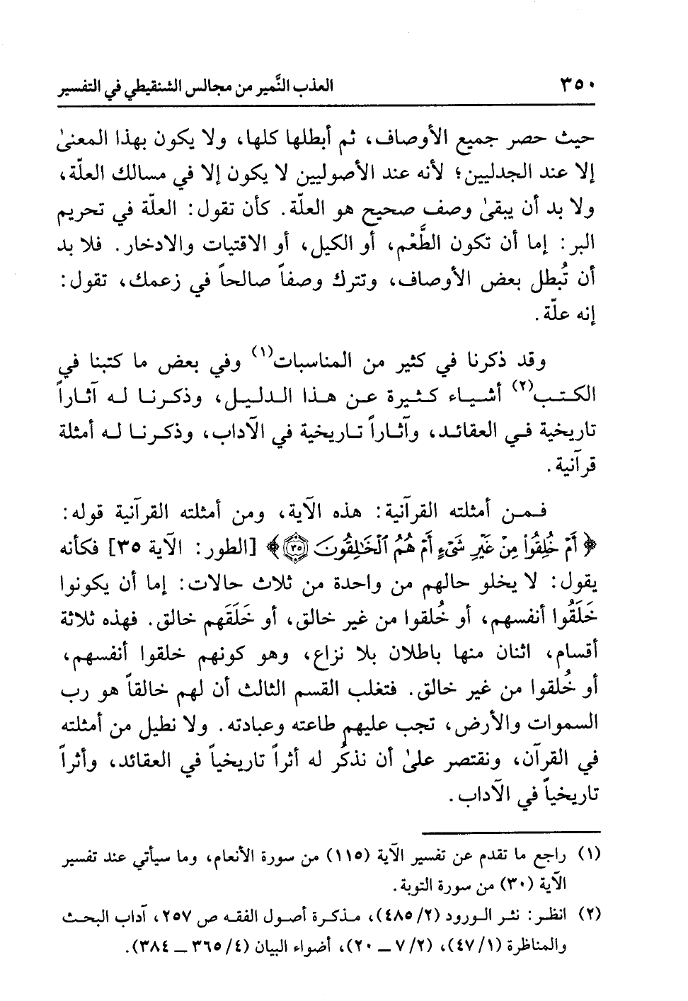 (¬2) انظر: نثر الورود (2/ 485)، مذكرة أصول الفقه ص 257، آداب البحث والمناظرة (1/ 47)، (2/ 7 - 20) أضواء البيان (4/ 365 - 384).