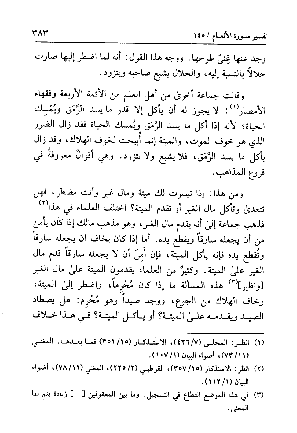 (¬2) انظر: الاستذكار (15/ 357)، القرطبي (2/ 225)، المغني (11/ 78)، أضواء البيان (1/ 112).
