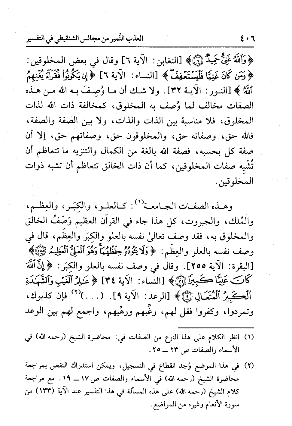 (¬2) في هذا الموضع وُجد انقطاع في التسجيل، ويمكن استدراك النقص بمراجعة محاضرة الشيخ (رحمه الله) في الأسماء والصفات (ص 17 - 19) مع مراجعة كلام الشيخ (رحمه الله) على هذه المسألة في هذا التفسير عند الآية (133) من سورة الأنعام وغيره من المواضع بالإضافة إلى محاضرة (منهج ودراسات لآيات الأسماء والصفات).