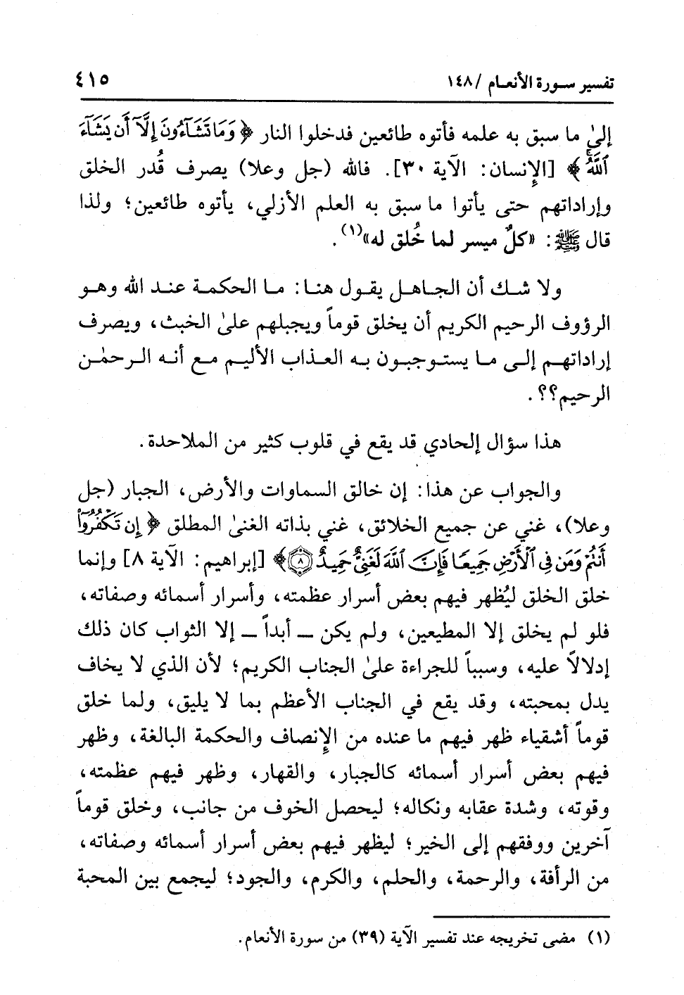 إلى ما سبق به علمه فأتَوْهُ طائعين فدخلوا النار {وَمَا تَشَاءُونَ إِلَّا أَن يَشَاءَ اللهُ} [الإنسان: الآية30] فالله (جل وعلا) يَصْرِفُ قُدر الخلق وإراداتهم حتى يأتوا ما سبق به العلم الأزلي، يأتوه طائعين؛ ولذا قال - صلى الله عليه وسلم -: «كُلٌّ مُيَسَّرٌ لِمَا خُلِقَ لَهُ» (¬1).