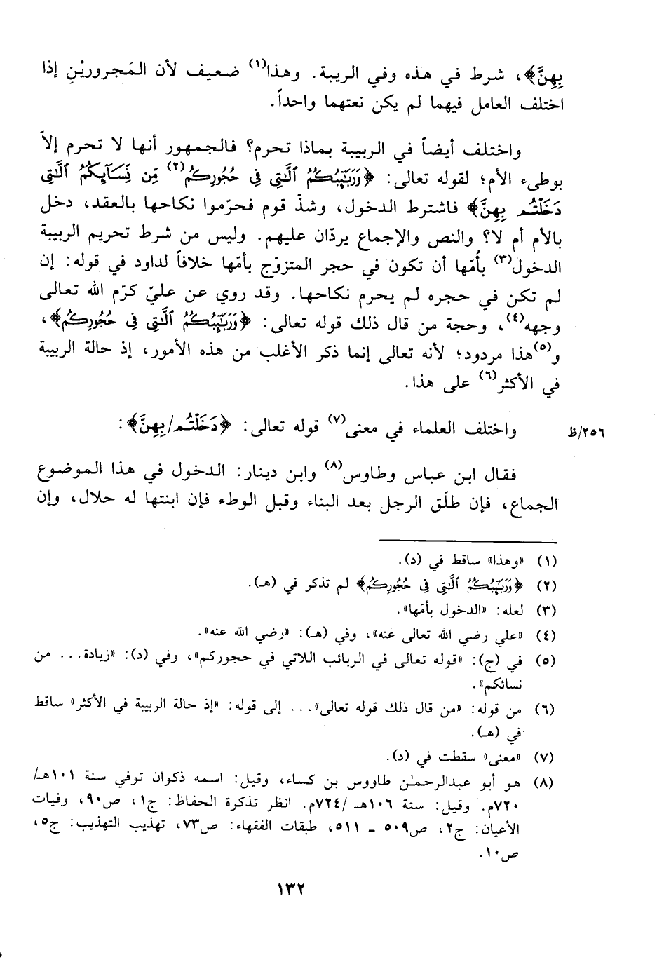 فقال ابن عباس وطاوس وابن دينار: الدخول في هذا الموضوع الجماع، فإن أطلق الرجل بعد البناء وقبل بعد البناء وقبل الوطء فإن ابنتها له حلال، وإن