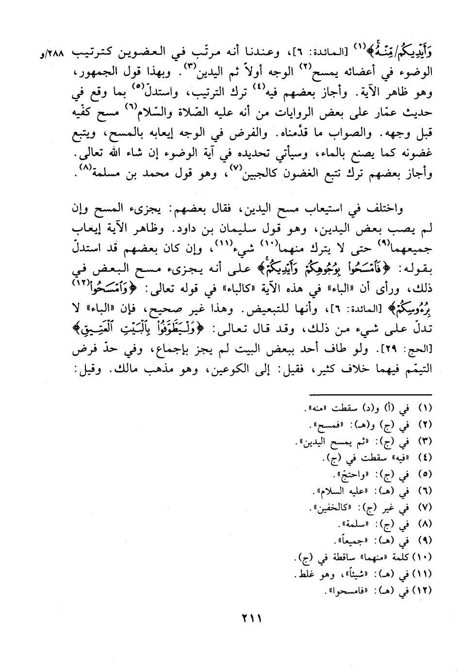 وأجاز بعضهم ترك تتبع الغضون كالجبين، وهو قول محمد بن مسلمة.