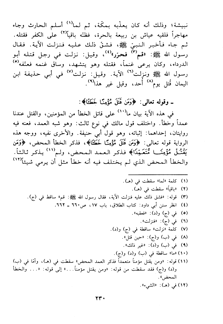 ثم جاء فأخبر النبي صلى الله عليه وسلم، فشق ذلك عليه فنزلت الآية. فقال رسول الله صلى الله عليه وسلم: ((قم فحرر))، وقيل: نزلت في رجل قتله أبو الدرداء، وكان يرعى غنمًا، فقتله وهو يتشهد، وساق غنمه فعنفه رسول الله صلى الله عليه وسلم ونزلت الآية. وقيل: نزلت في أبي حذيفة بن اليمان قتل يوم أحد، وقيل غير هذا.