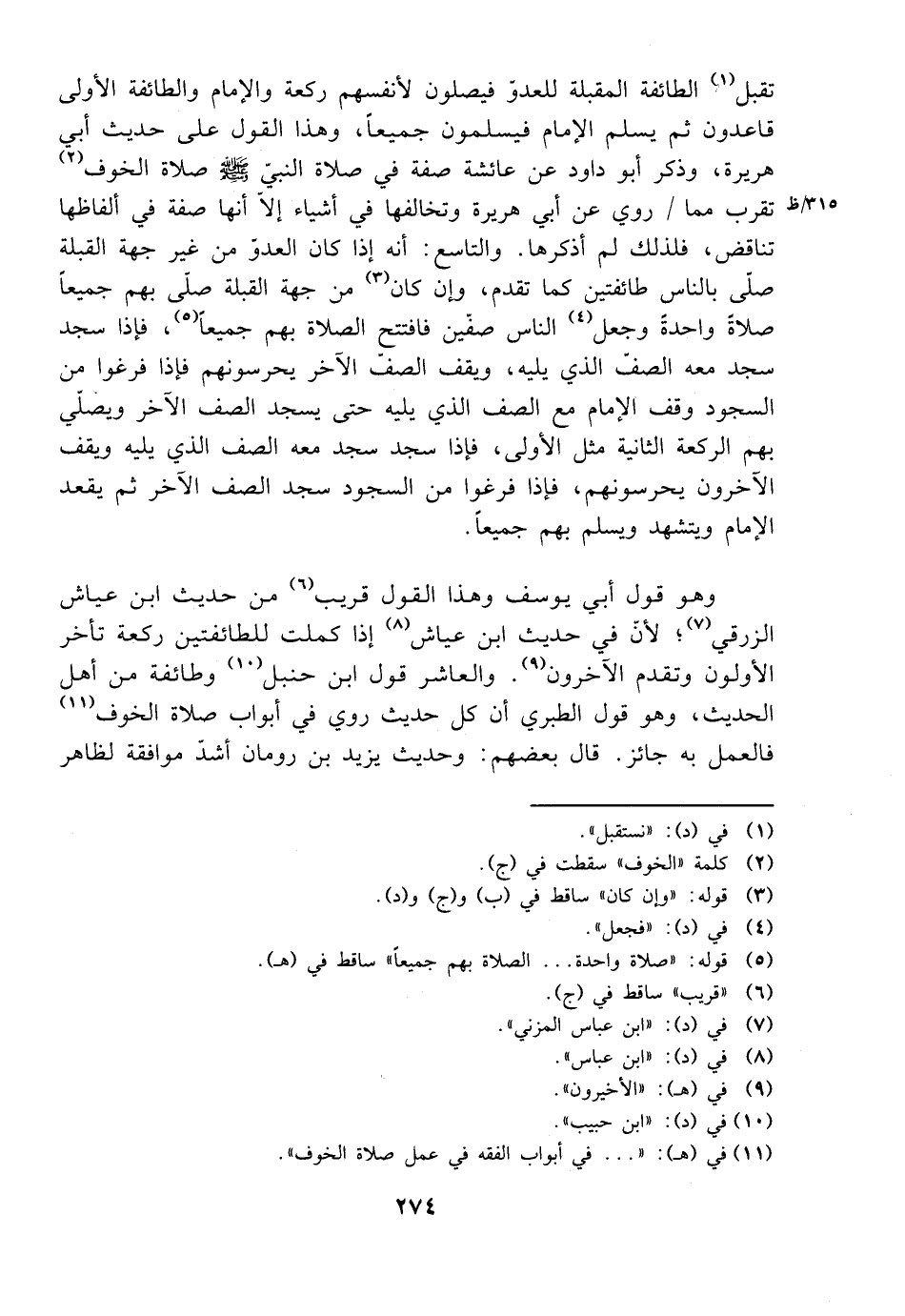 وهو قول أبي يوسف وهذا القول قريب من حديث ابن عياش الزرقي؛ لأن في حديث ابن عياش إذا كملت للطائفتين ركعة تأخر الأولون وتقدم الآخرون. والعاشر قول ابن حنبل وطائفة من أهل الحديث، وهو قول الطبري أن كل حديث روي في أبواب صلاة الخوف فالعمل به جائز. وقال بعضهم: وحديث يزيد بن رومان أشد موافقة لظاهر