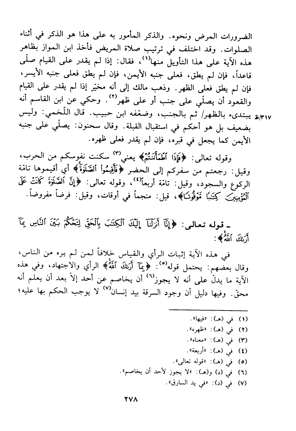 في هذه الآية إثبات الرأي والقياس خلافًا لمن لم يره من الناس، وقال بعضهم: يحتمل قوله: {بما أراك الله} الرأي والاجتهاد، وفي هذه الآية ما يدل على أنه لا يجوز أن يخاصم عن أحد إلا بعد أن يعلم أنه محق. وفيها دليل أن وجود السرقة بيد الإنسان لا يوجب الحكم بها عليه؛