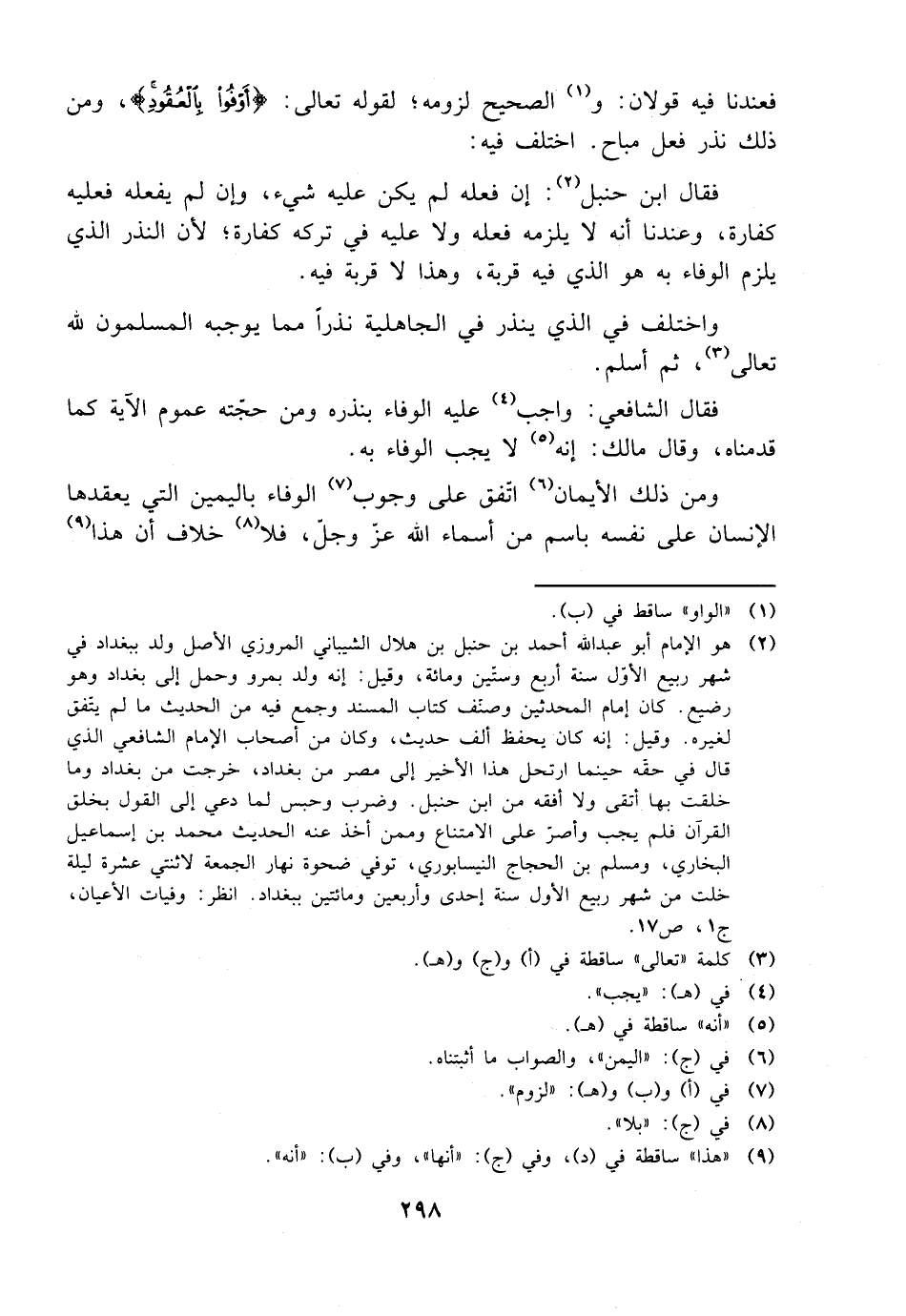 فقال ابن حنبل: إن فعله لم يكن عليه شيء، وإن لم يفعله فعليه كفارة، وعندنا أنه لا يلزمه فعله ولا عليه في تركه كفارة؛ لأن النذر الذي يلزم الوفاء به هو الذي فيه قربة، وهذا لا قربة فيه.