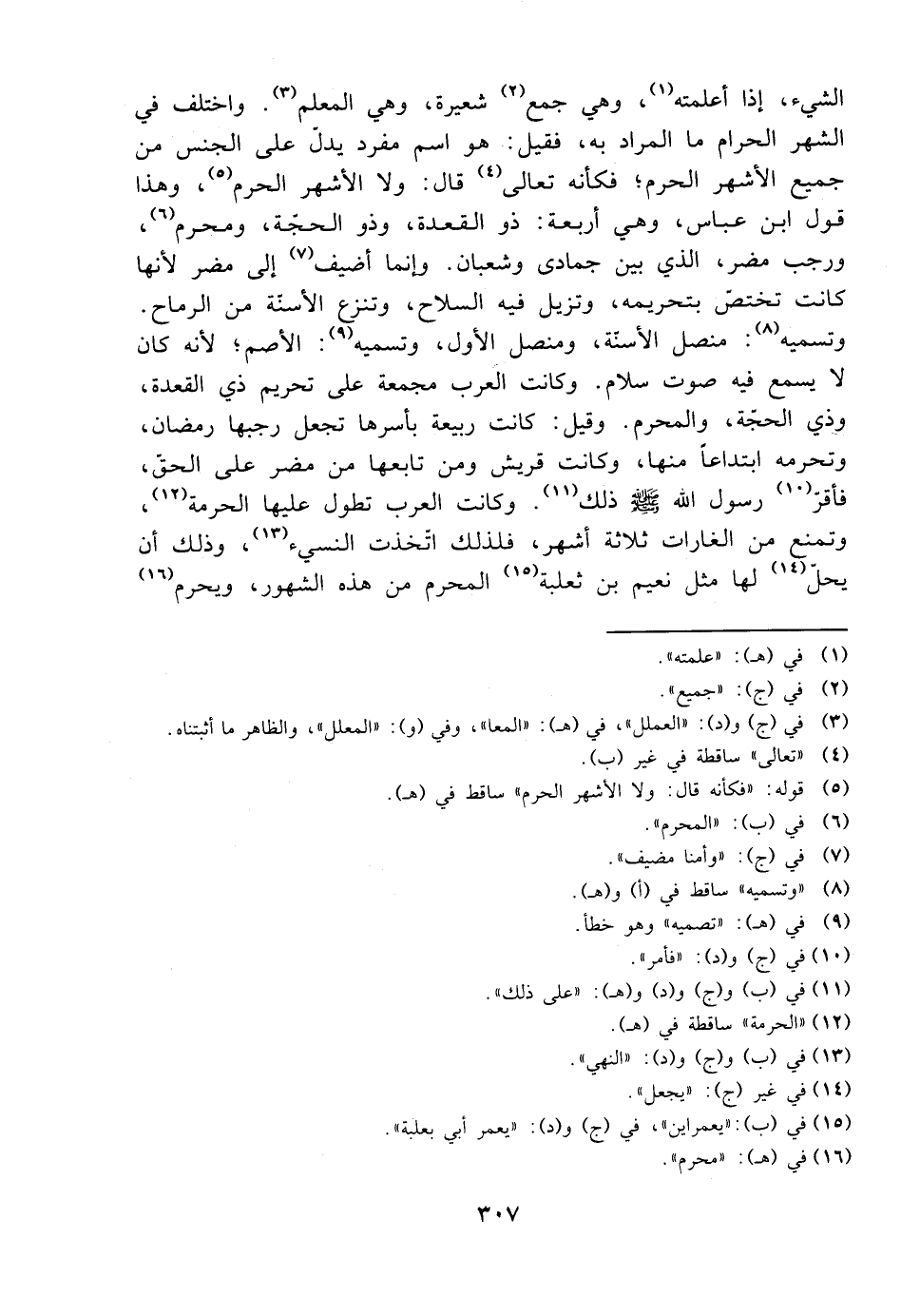 الشيء، إذا علمته، وهي جميع شعيرة، وهي المعلم. واختلف في الشهر الحرام ما المراد به، فقيل: هو اسم مفرد يدل على الجنس من جميع الأشهر الحرم؛ فكأنه تعالى قال: ولا الأشهر الحرم، وهذا قول ابن عباس، وهي أربعة: ذو القعدة، وذو الحجة، ومحرم، ورجب مضر، الذي بين جمادى وشعبان. وإنما أضيف إلى مضر لأنها كانت تختص بتحريمه، وتزيل فيه السلاح، وتنزع الأسنة من الرماح. وتسميه: منصل الأسنة، ومنصل الأول، وتسميه: الأصم؛ لأنه كان لا يسمع فيه صوت سلام. وكانت العرب مجمعة على تحريم ذي القعدة، وذي الحجة، والمحرم. وقيل: كانت ربيعة بأسرها تجعل رجبها رمضان، وتحرمه ابتداعًا منها، وكانت قريش ومن تابعها من مضر على الحق، فأقر رسول الله صلى الله عليه وسلم ذلك. وكانت العرب تطول عليها الحرمة، وتمنع من الغارات ثلاثة أشهر، فلذلك اتخذت النسيء، وذلك أن يحل لها مثل نعيم بن ثعلبة المحرم من هذه الشهور، ويحرم
