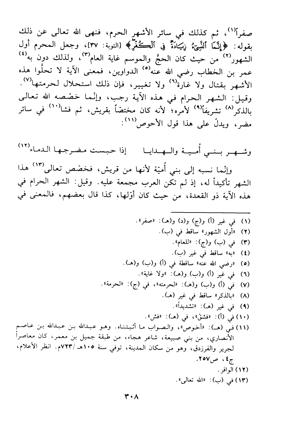 وإنما نسبه إلى بني أمية لأنها من قريش، فخصص تعالى هذا الشهر تأكيدًا له، إذ لم تكن العرب مجمعة عليه. وقيل: الشهر الحرام في هذه الآية ذو القعدة، من حيث كان أولها، كذا قال بعضهم، فالمعنى في