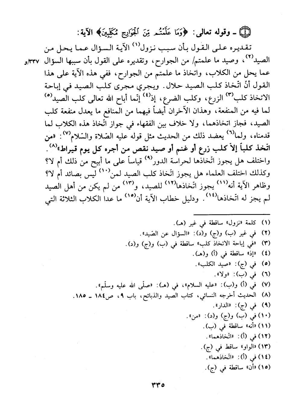 (4) - وقوله تعالى: {وما علمتم من الجوارح مكلبين} الآية:
