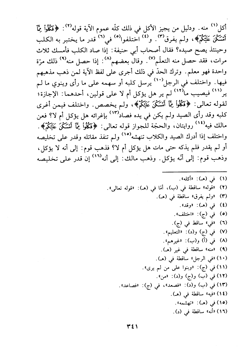 واختلف إذا أدرك الصيد والكلاب تنهشه ولم تنفذ مقاتله وقدر على تخليصه أو لم يقدر فلم يذكه حتى مات هل يؤكل أم لا؟ فذهب قوم: إلى أنه لا يؤكل، وذهب قوم: إلى أنه يؤكل. وذهب مالك: إلى أنه إن قدر على تخليصه