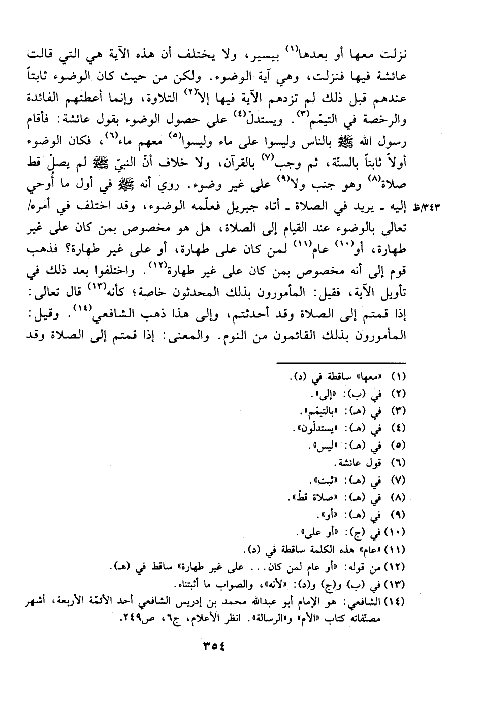 نزلت معها أو بعدها بيسير، ولا يختلف أن هذه الآية هي التي قالت عائشة فيها فنزلت، وهي آية الوضوء. ولكن من حيث كان الوضوء ثابتًا عندهم قبل ذلك لم تزدهم الآية فيها إلا التلاوة، وإنما أعطتهم الفائدة والرخصة في التيمم. ويستدل على حصول الوضوء بقول عائشة: فأقام رسول الله صلى الله عليه وسلم بالناس وليسوا على ماء وليسوا معهم ماء، فكان الوضوء أولًا ثابتًا بالسنة، ثم وجب بالقرآن، ولا خلاف أن النبي صلى الله عليه وسلم لم يصل قد صلاة وهو جنب ولا على غير وضوء. وروي أنه صلى الله عليه وسلم في أول ما أوحي إليه- يريد في الصلاة- أتاه جبريل فعلمه الوضوء، وقد اختلف في أمره تعالى بالوضوء عند القيام إلى الصلاة، هل هو مخصوص بمن كان على غير طهارة، أو عام لمن كان على طهارة، أو على غير طهارة؟ فذهب قوم إلى أنه مخصوص بمن كان على غير طهارة. واختلفوا بعد ذلك في تأويل الآية، فقيل: المأمورون بذلك المحدثون خاصة؛ كأنه قال تعالى إذا قمتم إلى الصلاة وقد أحدثتم، وإلى هذا ذهب الشافعي. وقيل: المأمورون بذلك القائمون من النوم. والمعنى: إذا قمتم إلى الصلاة وقد