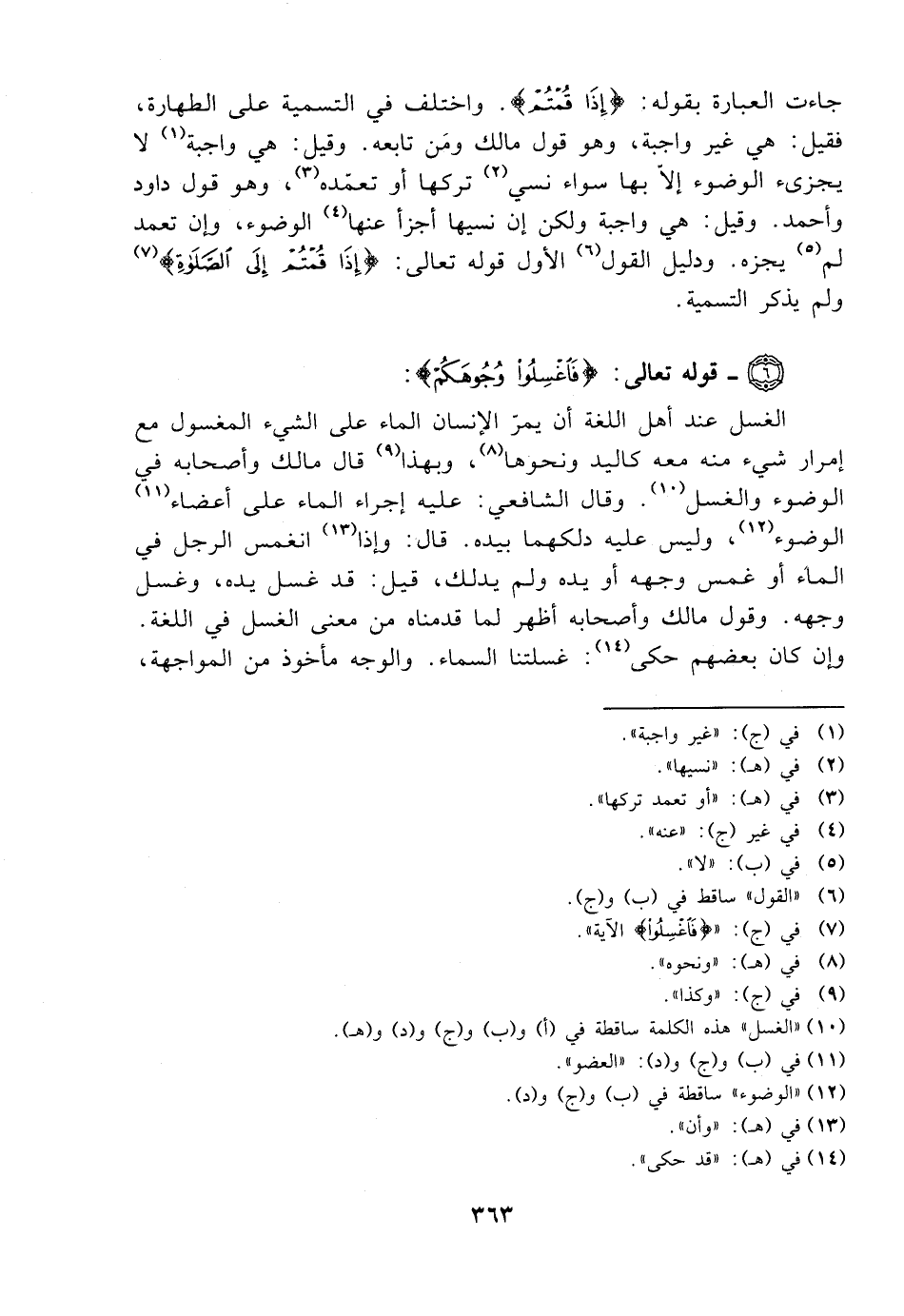 (6) - قوله تعالى: {فاغسلوا وجوهكم}:
