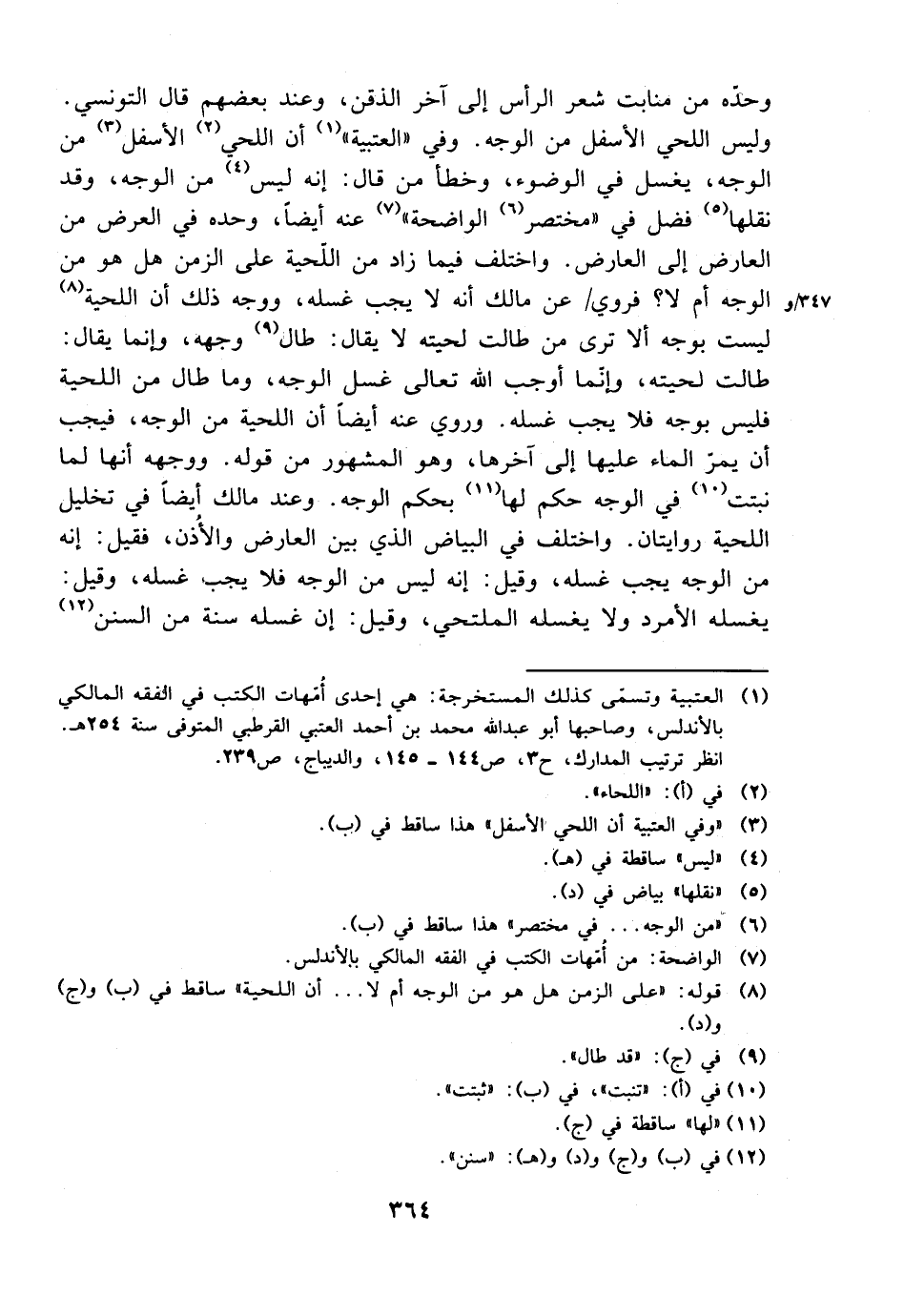 وليس اللحي الأسفل الوجه. وفي ((العتبية)) أن اللحي الأسفل من الوجه، يغسل في الوضوء، وخطأ من قال: إنه ليس من الوجه، وقد نقلها فضل في ((مختصر الواضحة)) عنه أيضًا، وحده في العرض من العارض إلى العارض. واختلف فيما زاد من اللحية على الزمن هل هو من الوجه أم لا؟ فوري عن مالك أنه لا يجب غسله، ووجه ذلك أن اللحية ليست بوجه ألا ترى من طالت لحيته لا يقال طال وجهه، إنما يقال: طالت لحيته، وإنما أوجب الله تعالى غسل الوجه، وما طال من اللحية فليس بوجه فلا يجب غسله. وروي عنه أيضًا أن اللحية من الوجه، فيجب أن يمر الماء عليها إلى آخرها، وهو المشهور من قوله. ووجهه أنها لما نبتت في الوجه حكم لها بحكم الوجه. وعند مالك أيضًا في تخليل اللحية روايتان. واختلف في البياض الذي بين العارض والأذن، فقيل: إنه من الوجه يجب غسله، وقيل: إنه ليس من الوجه فلا يجب غسله، وقيل: يغسله الأمرد ولا يغسله الملتحي، وقيل: إن غسله سنة من السنن