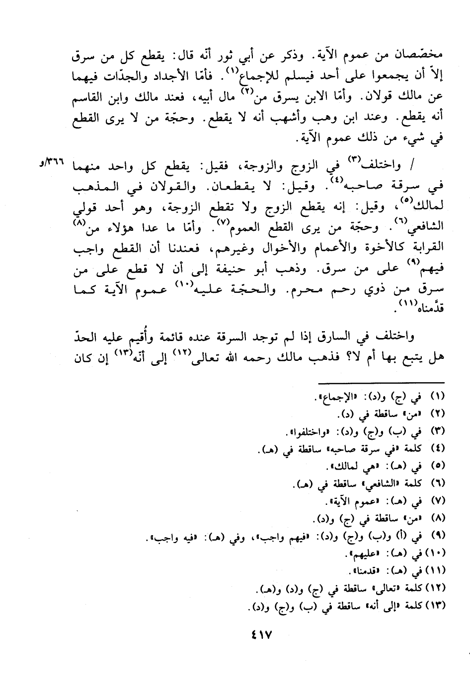 واختلف في الزوج والزوجة، فقيل: يقطع كل واحد منهما في سرقة صاحبه. وقيل: لا يقطعان. والقولان في المذهب لمالك، وقيل: إنه يقطع الزوج ولا تقطع الزوجة، وهو أحد قولي الشافعي. وحجة من يرى القطع العموم. وأما ما عدا هؤلاء من القرابة كالأخوة والأعمام والأخوال وغيرهم، فعندنا أن القطع واجب فيهم على من سرق. وذهب أبو حنيفة إلى أن لا قطع على من سرق من ذوي رحم محرم. والحجة عليه عموم الآية كما قدمناه.