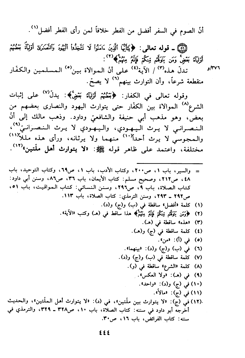 وقوله تعالى في الكفار: {بعضهم أولياء بعض}: يدل على إثبات الشرع الموالاة بين الكفار حتى يتوارث اليهود والنصارى بعضهم من بعض، وهو مذهب أبي حنيفة والشافعي وداود. وذهب مالك إلى أن النصراني لا يرث اليهودي، واليهودي لا يرث النصراني، والمجوسي لا يرث أحدًا منهما ولا يرثانه، ورأى هذه مللًا مختلفة، واعتمد على ظاهر قوله صلى الله عليه وسلم: ((لا يتوارث أهل ملتين)).