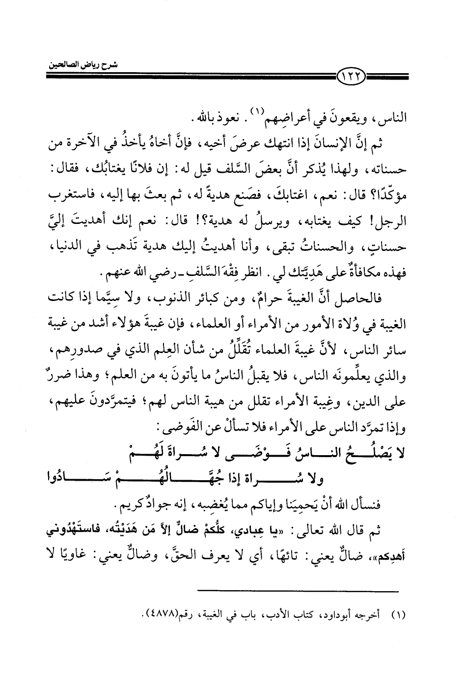 فالحاصل أن الغيبة حرام، ومن كبائر الذنوب، ولا سيما إذا كانت الغيبة في ولاة الأمور من الأمراء أو العلماء، فإن غيبة هؤلاء أشد من غيبة سائر الناس، لأن غيبة العلماء تقلل من شأن العلم الذي في صدورهم، والذي يعلمونه الناس، فلا يقبل الناس ما يأتون به من العلم، وهذا ضرر على الدين، وغيبة الأمراء تقلل من هيبة الناس لهم؛ فيتمردون عليهم وإذا تمرد الناس على الأمراء فلا تسأل عن الفوضى: