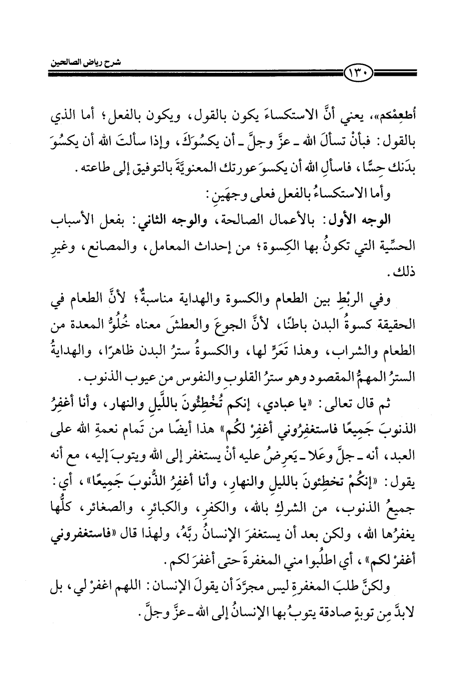 أطعمكم) ، يعني أن الاستكساء يكون بالقول، ويكون بالفعل؛ أما الذي بالقول: فبأن تسال الله ـ عز وجل ـ أن يكسوك، وإذا سالت الله أن يكسو بدنك حسياً، فسأل الله أن يكسو عورتك المعنوية بالتوفيق إلى طاعته.
