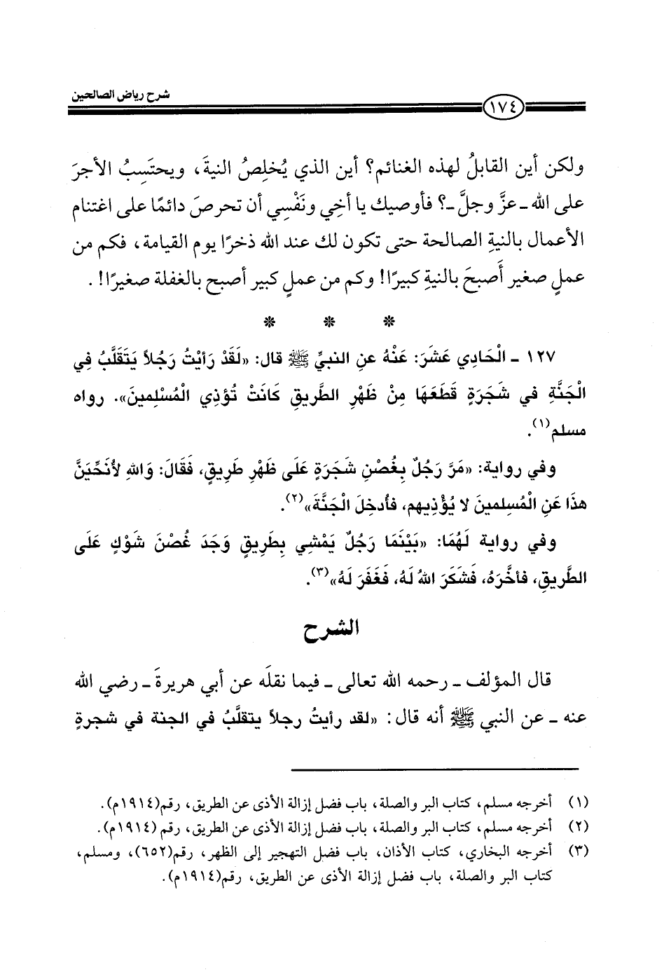127 ـ الحادي عشر: عنه عن النبي صلى الله عليه وسلم قال: (لقد أريت رجلاً يتقلب في الجنة في شجرة